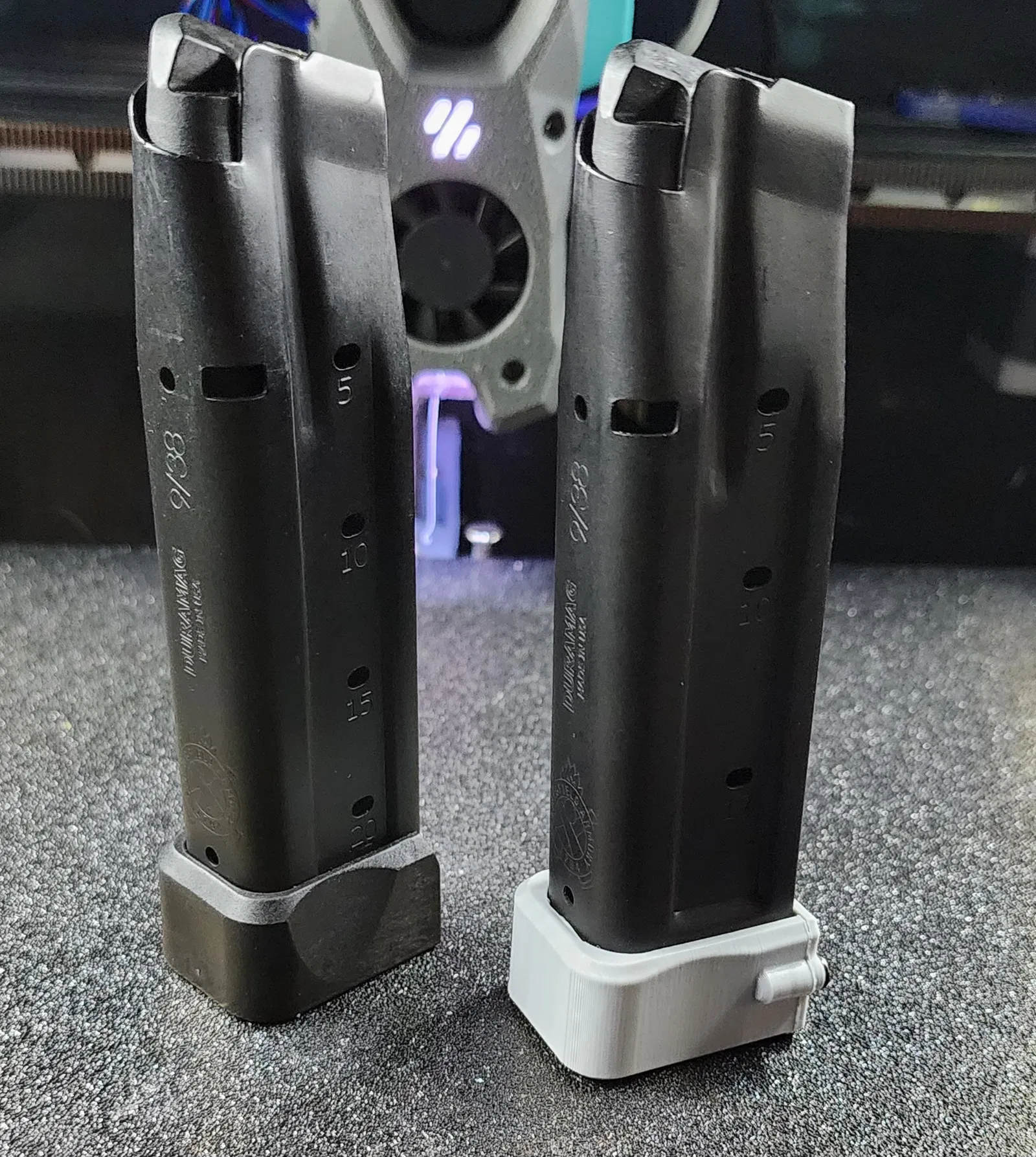 Hình chụp chung với băng đạn OEM 20 viên Prodigy DS, tao thiết kế nó cao cỡ đó khi gắn lên băng 17 viên để nó bằng với băng 20 viên.
