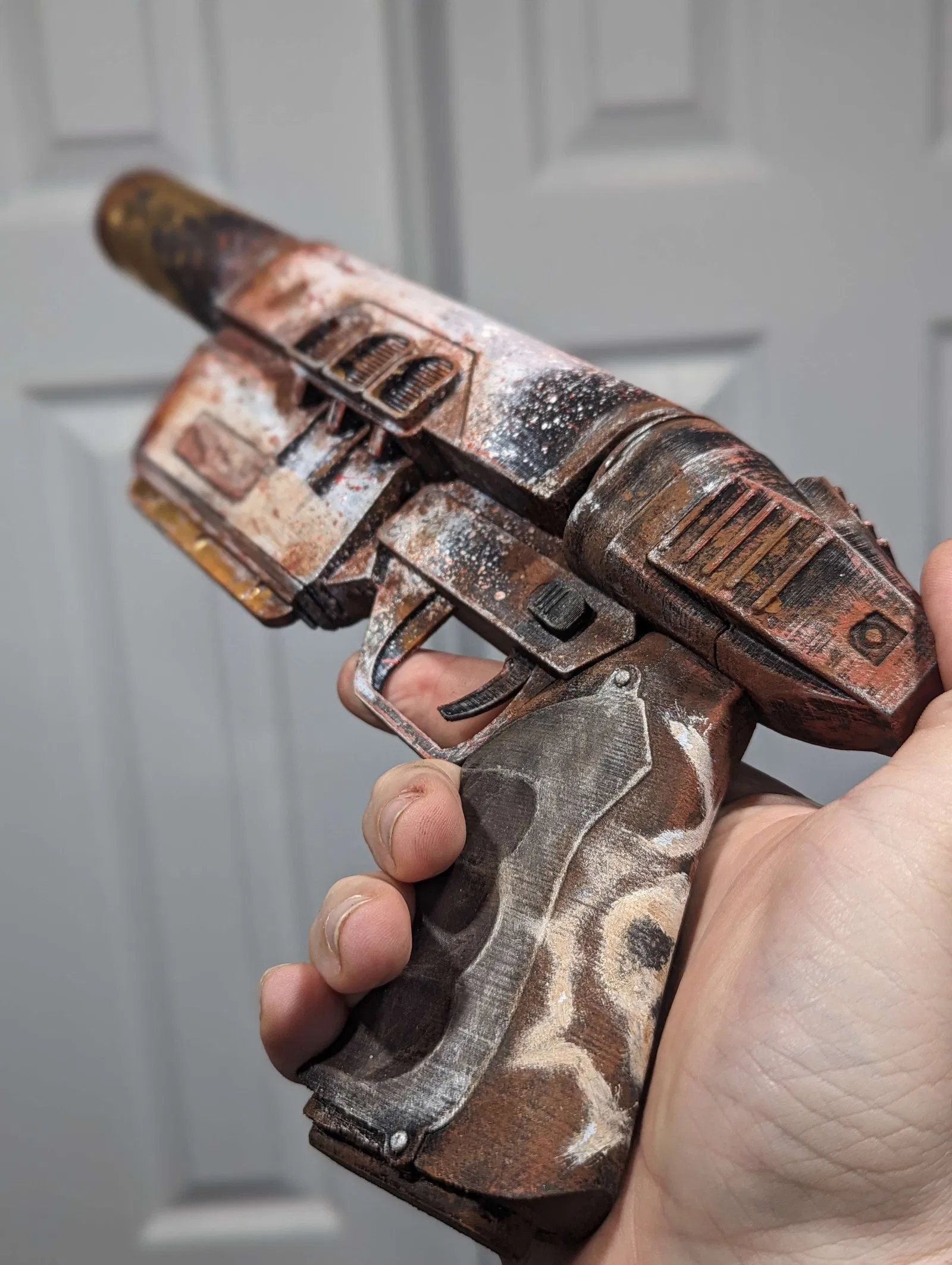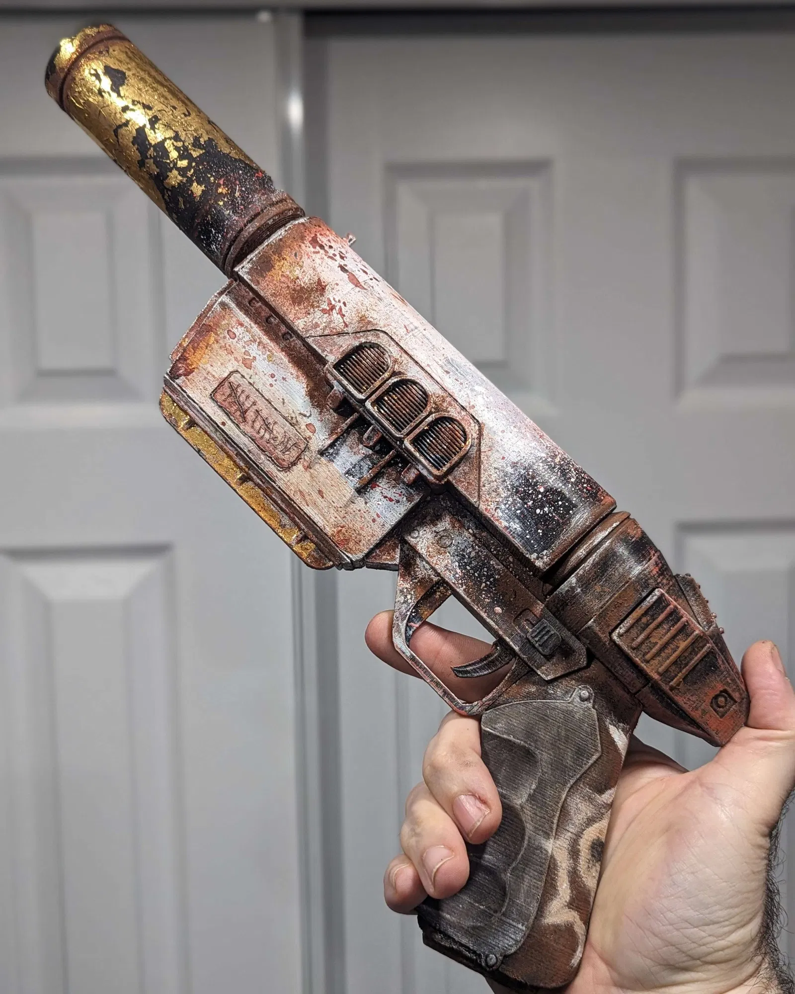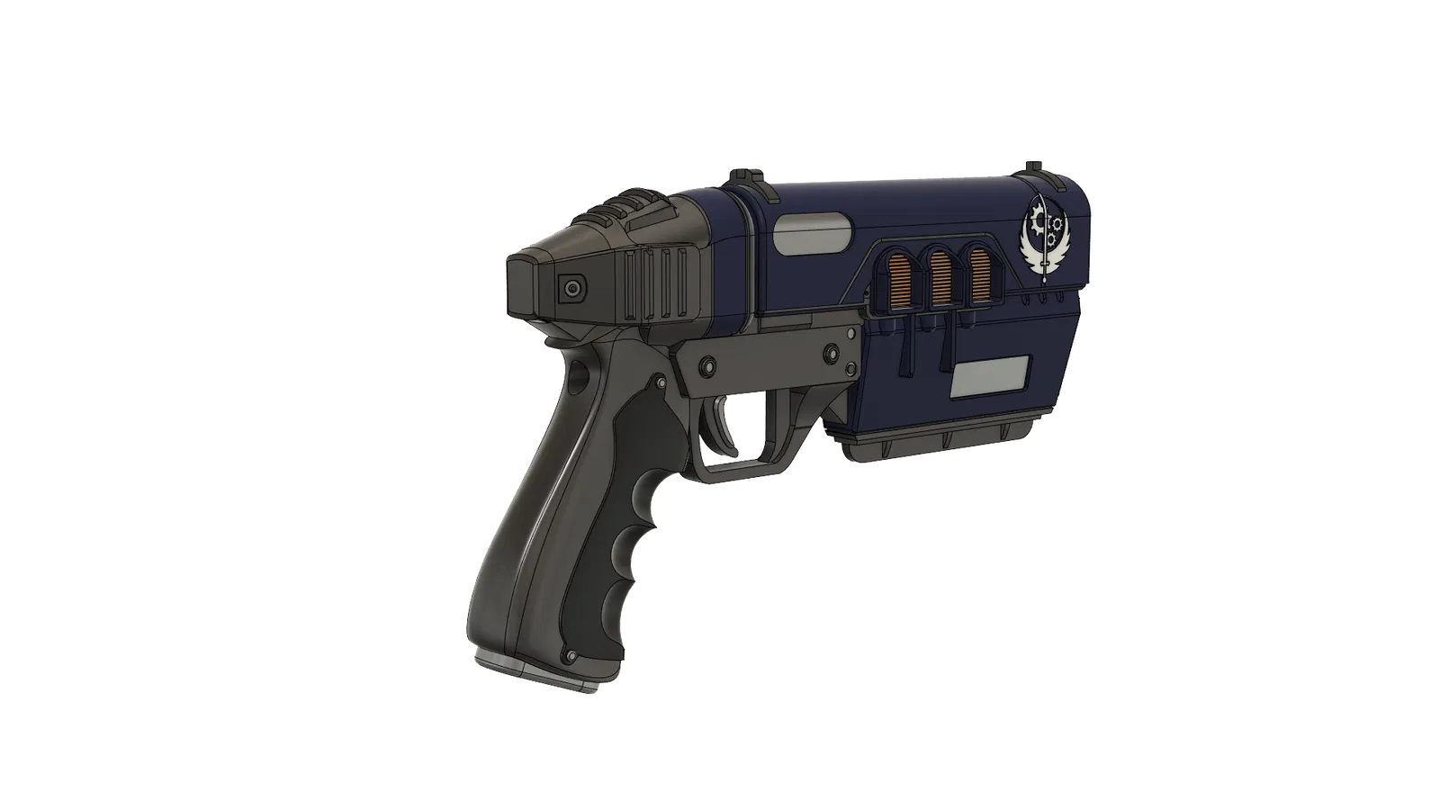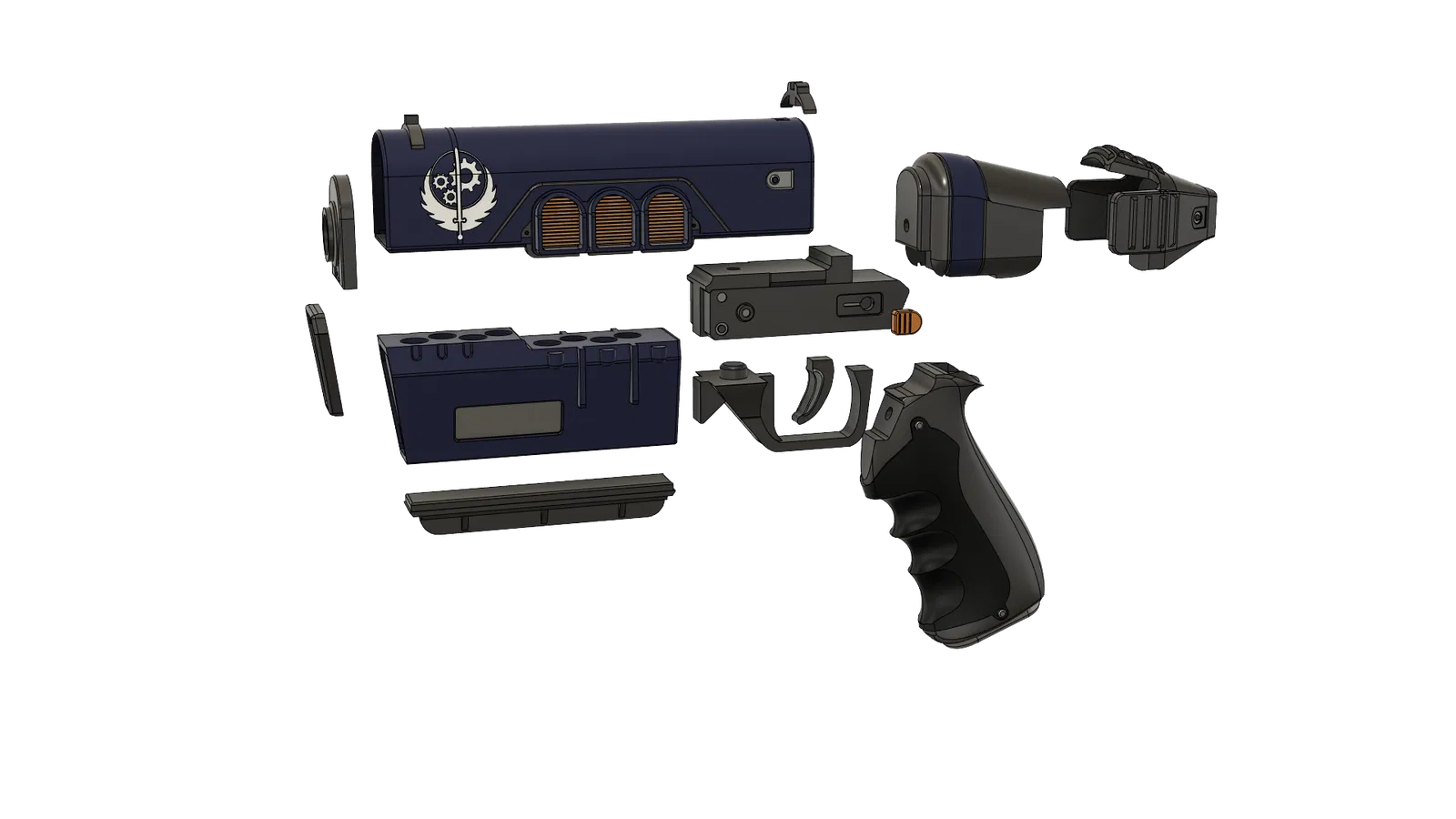 File STL súng lục "Crusader" từ Fallout 76. Đây là khẩu súng tiêu chuẩn của Brotherhood of Steel. Có 2 phiên bản nòng súng (có/không logo Brotherhood), kèm ống giảm thanh. Dùng ốc #6, nam châm 2mm x 10mm cho băng đạn.