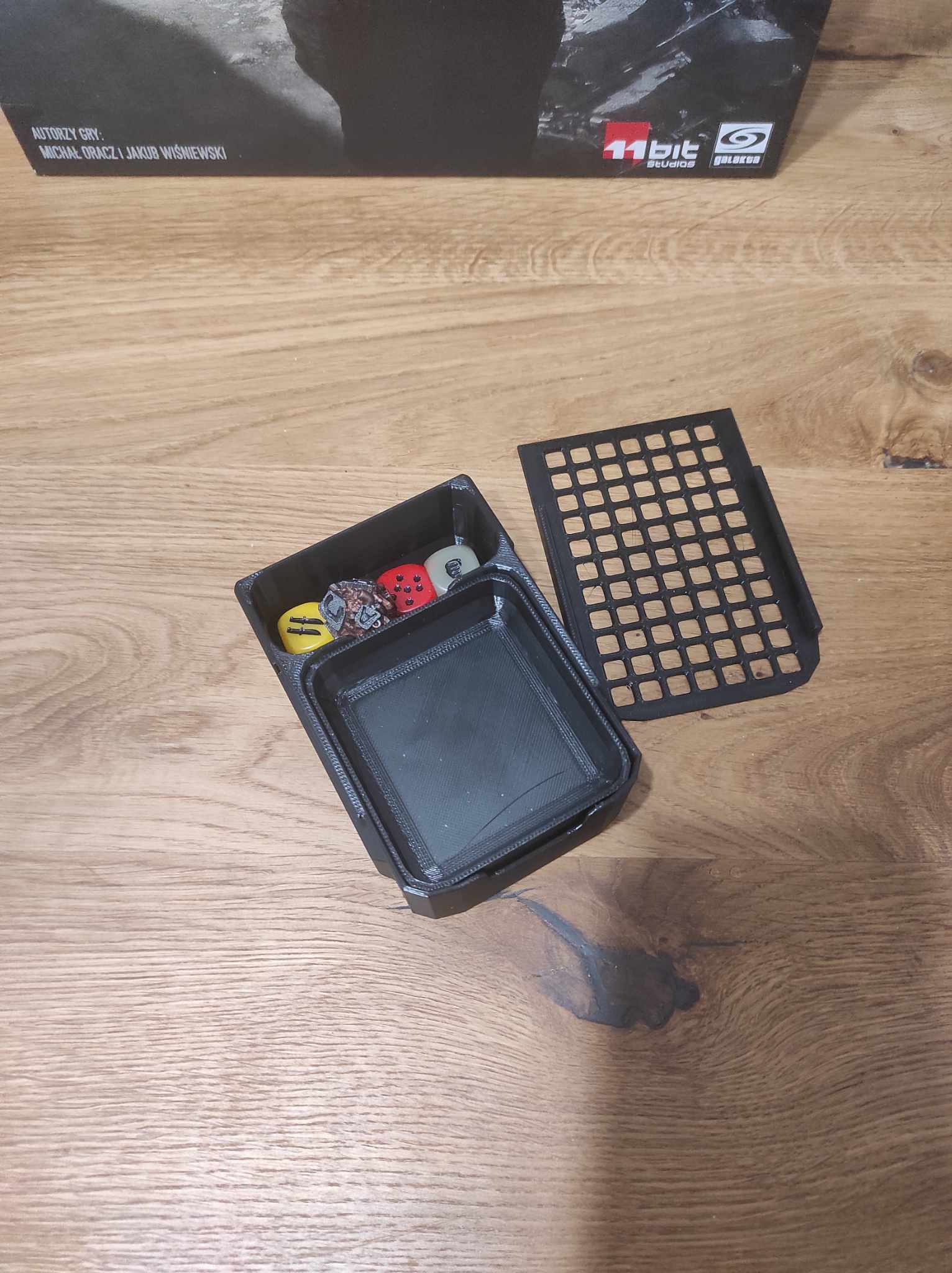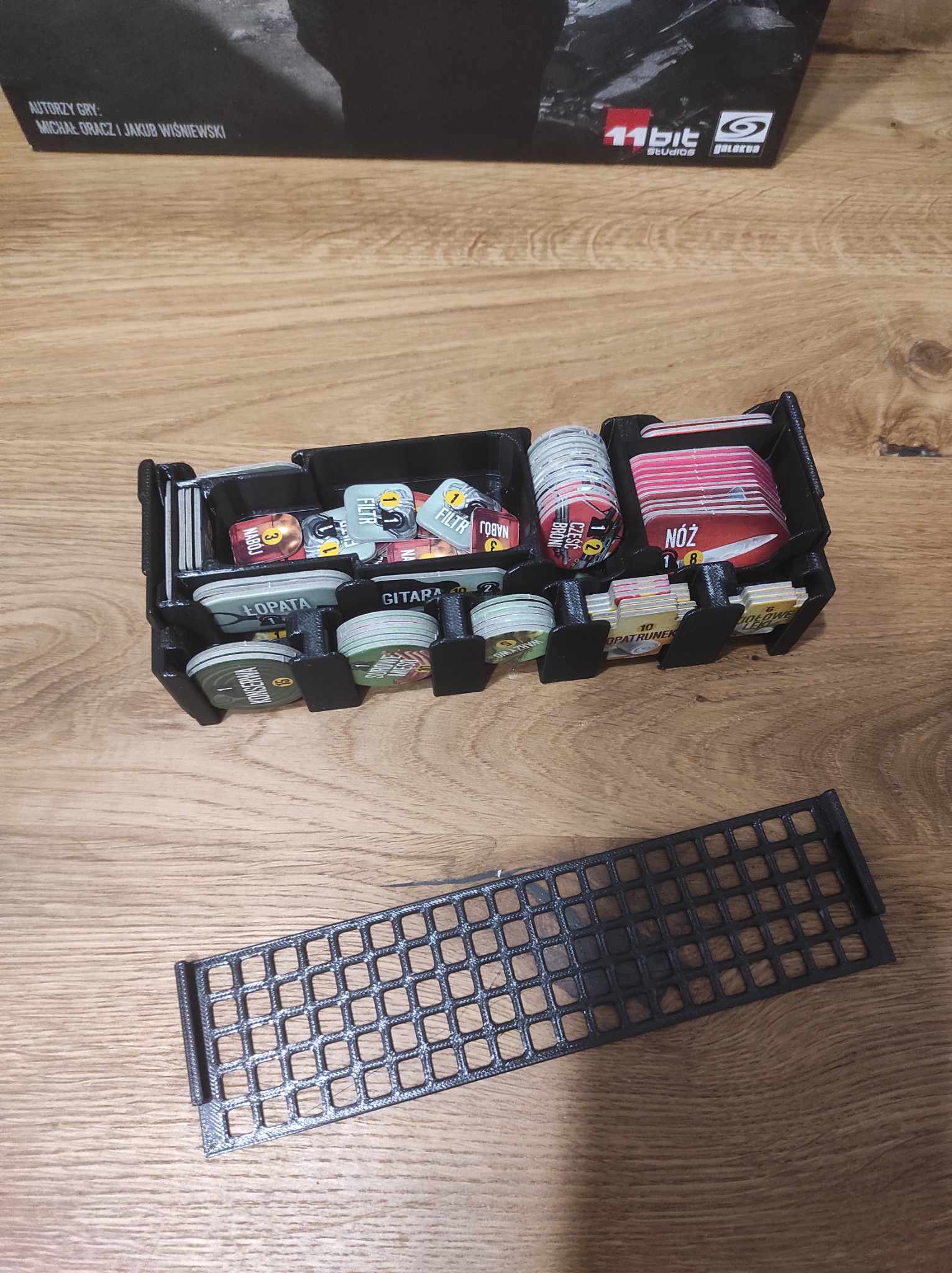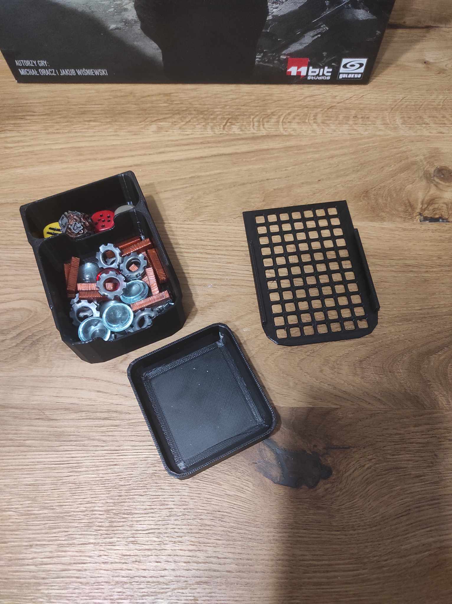 - khay đựng mô hình - dành cho mô hình (và tôi cũng lưu trữ các token trống ở đây), chúng lỏng lẻo nhưng nhờ có nắp - chúng sẽ được giữ an toàn.