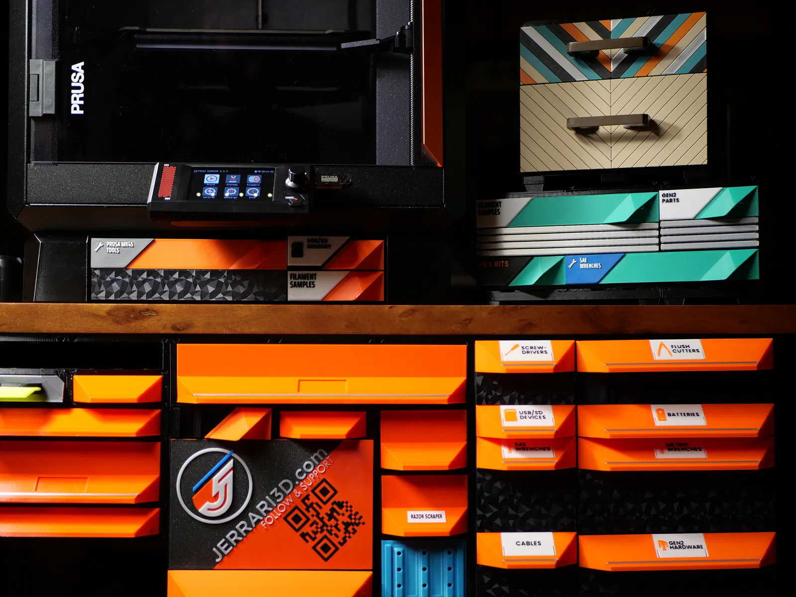 JERRARI3D.com Hệ thống Module GEN2 là giải pháp lưu trữ có thể in 3D, mang đến sự linh hoạt và tùy chỉnh tối ưu. Hoàn hảo cho người dùng gia đình, những người đam mê và doanh nghiệp nhỏ, để bạn có thể in chính xác những gì mình cần và tùy chỉnh mọi bộ phận cho phù hợp với không gian và phong cách của mình. Không giống như các bộ sản phẩm mua sẵn, GEN2 cho phép bạn in những gì bạn cần và mở rộng thiết lập của mình bất cứ khi nào bạn muốn. Các ngăn kéo ghép nối với nhau liền mạch, mang đến cho bạn khả năng mở rộng vô tận. Với cơ chế QuickLock độc đáo, việc sắp xếp lại hoặc di chuyển các ngăn kéo nhanh chóng và dễ dàng, vì vậy không gian lưu trữ của bạn có thể phát triển và thích ứng cùng bạn.