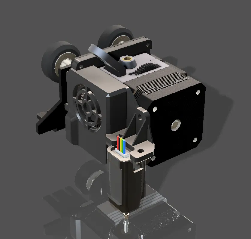 File này tui làm là bắt đầu từ cái extruder tui rút ra từ file CAD của con Ender 3. Mấy cái bánh xe thì cũng lấy từ đó lun nha.