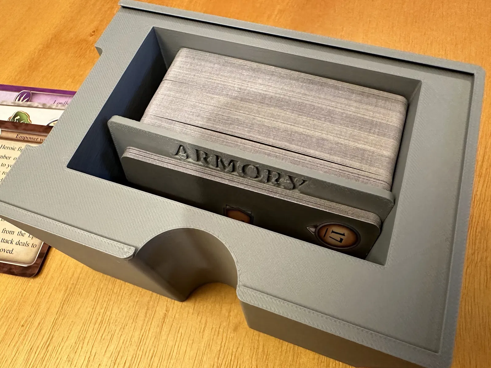 Một khay đựng đồ cho board game Tales from the Red Dragon Inn, giúp bạn thiết lập và dọn dẹp nhanh chóng. Khay được chia theo từng chương, tối ưu không gian và giữ mọi thứ ngăn nắp. Có các phiên bản chỉnh sửa cho máy in nhỏ và tùy chọn in đáy khay bằng infill.