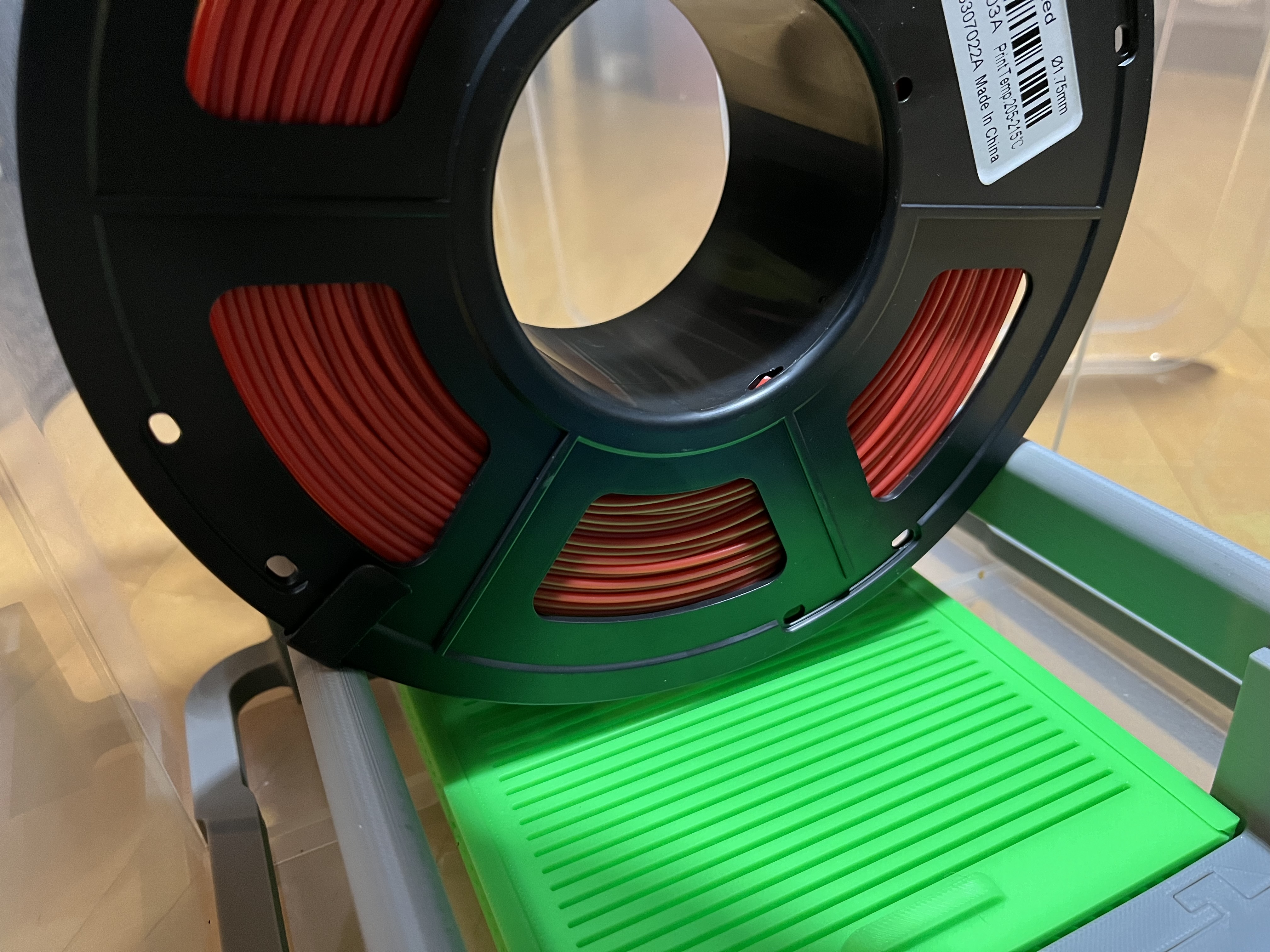 Tui dùng Giá Đỡ Cuộn Sợi (Spool Holder) của ThomaS để cất giữ filament trong hộp IKEA Samla 22l của mình.