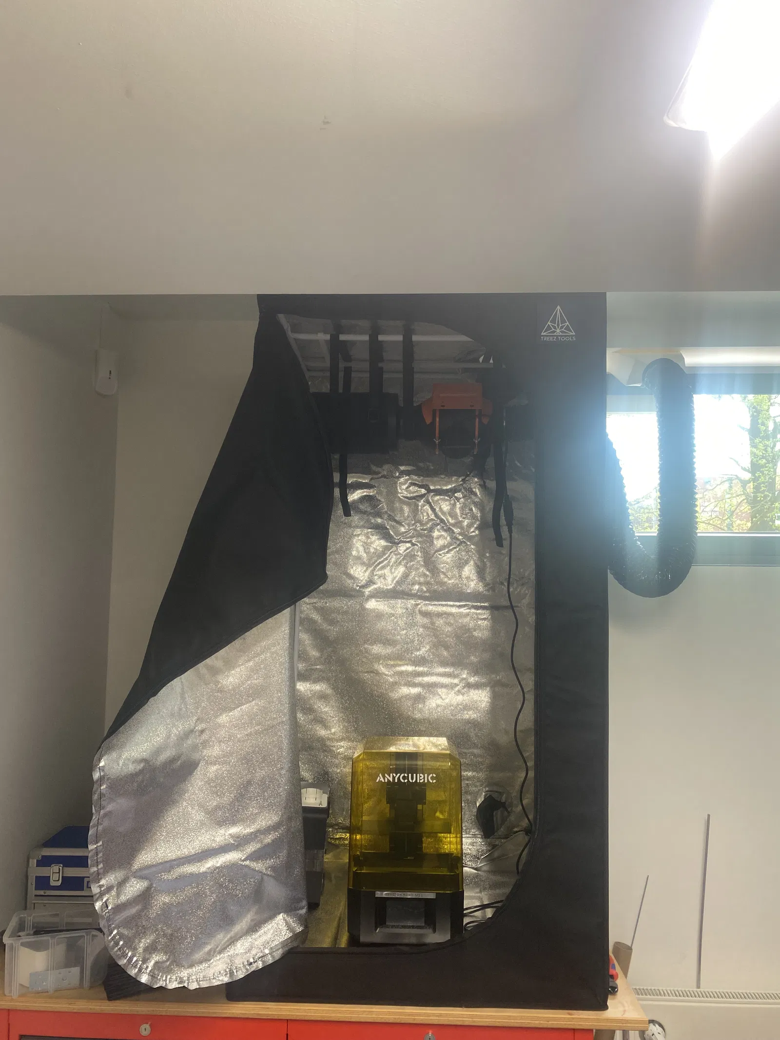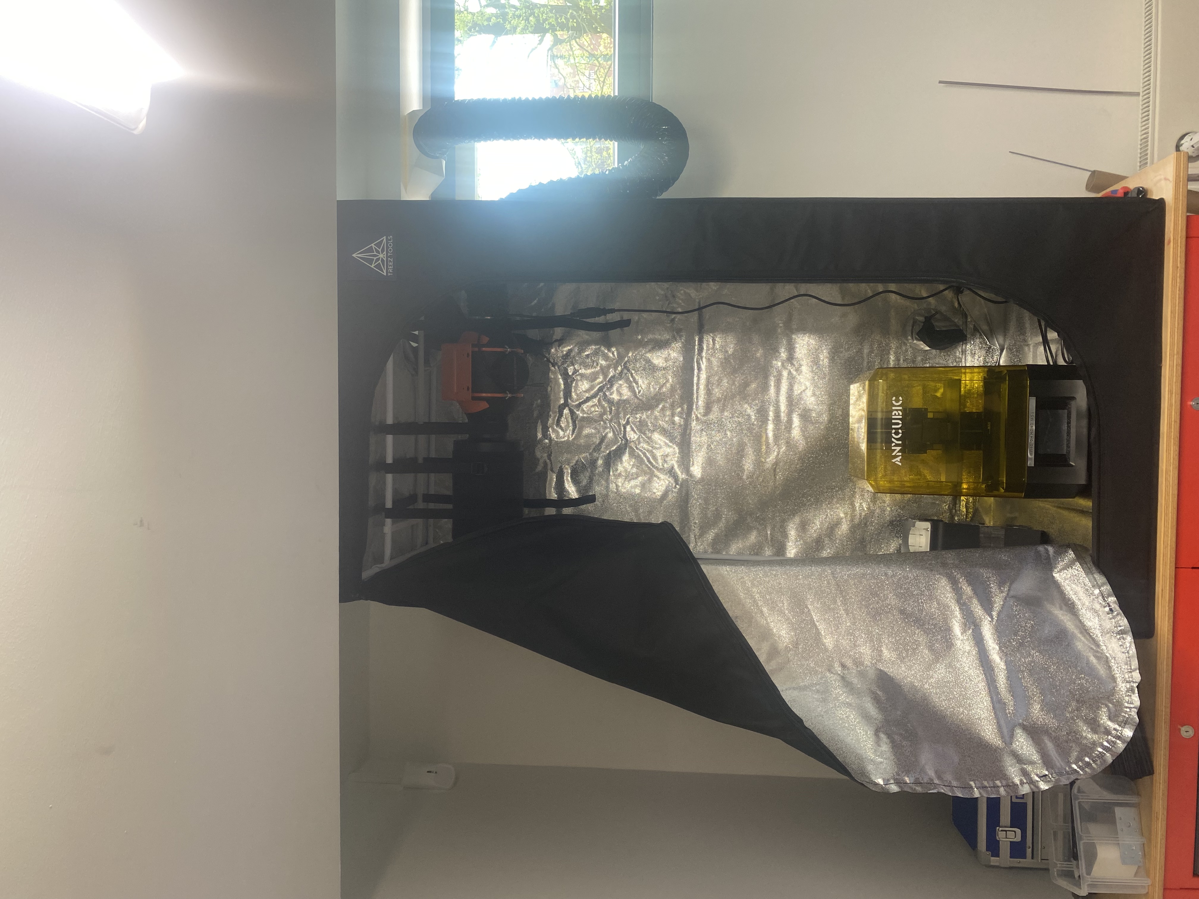Giải pháp cho vấn đề mùi nhựa resin khó chịu: sử dụng lều trồng cây (growtent) kết hợp hệ thống thông gió hiệu quả. Sản phẩm được thiết kế để in dễ dàng trên Prusa XL mà không cần bộ phận hỗ trợ.