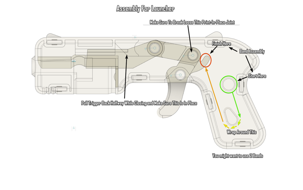 Khẩu Blaster đồ chơi tí hon phiên bản V2, bắn đạn airsoft 6mm, không cần keo hay ốc vít, chỉ dùng dây thun và các bộ phận in 3D. Dễ in, lắp ráp, tầm bắn xa hơn và cò bóp nhẹ hơn.