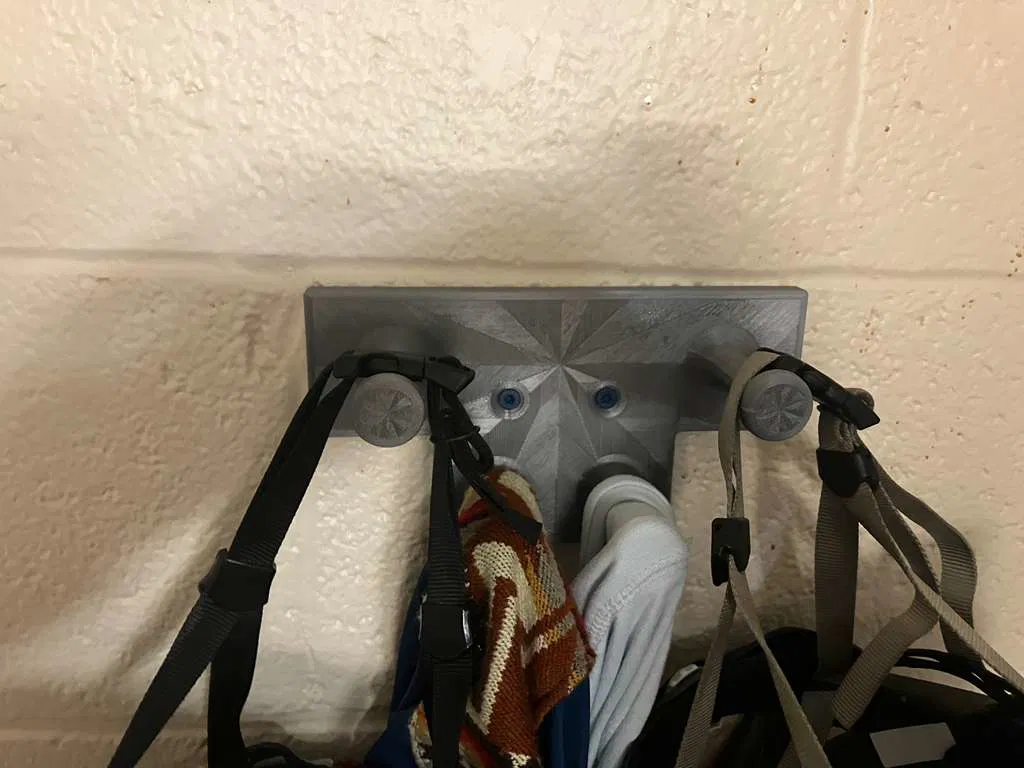 Móc treo này dùng để cất giữ áo khoác, mũ bảo hiểm và bất kỳ vật dụng nào có thể treo khác. Thiết kế dạng vặn, không cần hỗ trợ khi in, làm từ PETG cho độ bền cao. Có 4 tay treo đồ tiện lợi.