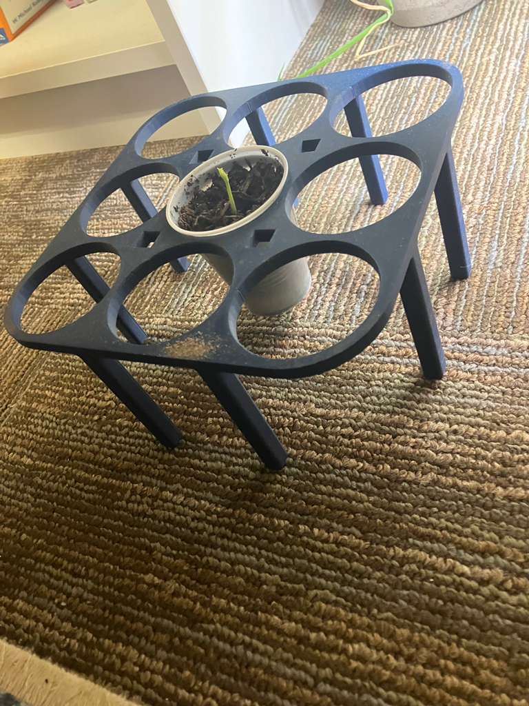 Dùng để ươm cây con, cái này đựng được tới 9 cái ly nhựa 6oz lận nha. In chân ở trên thì không cần support đâu, đựng ly ngon lành.