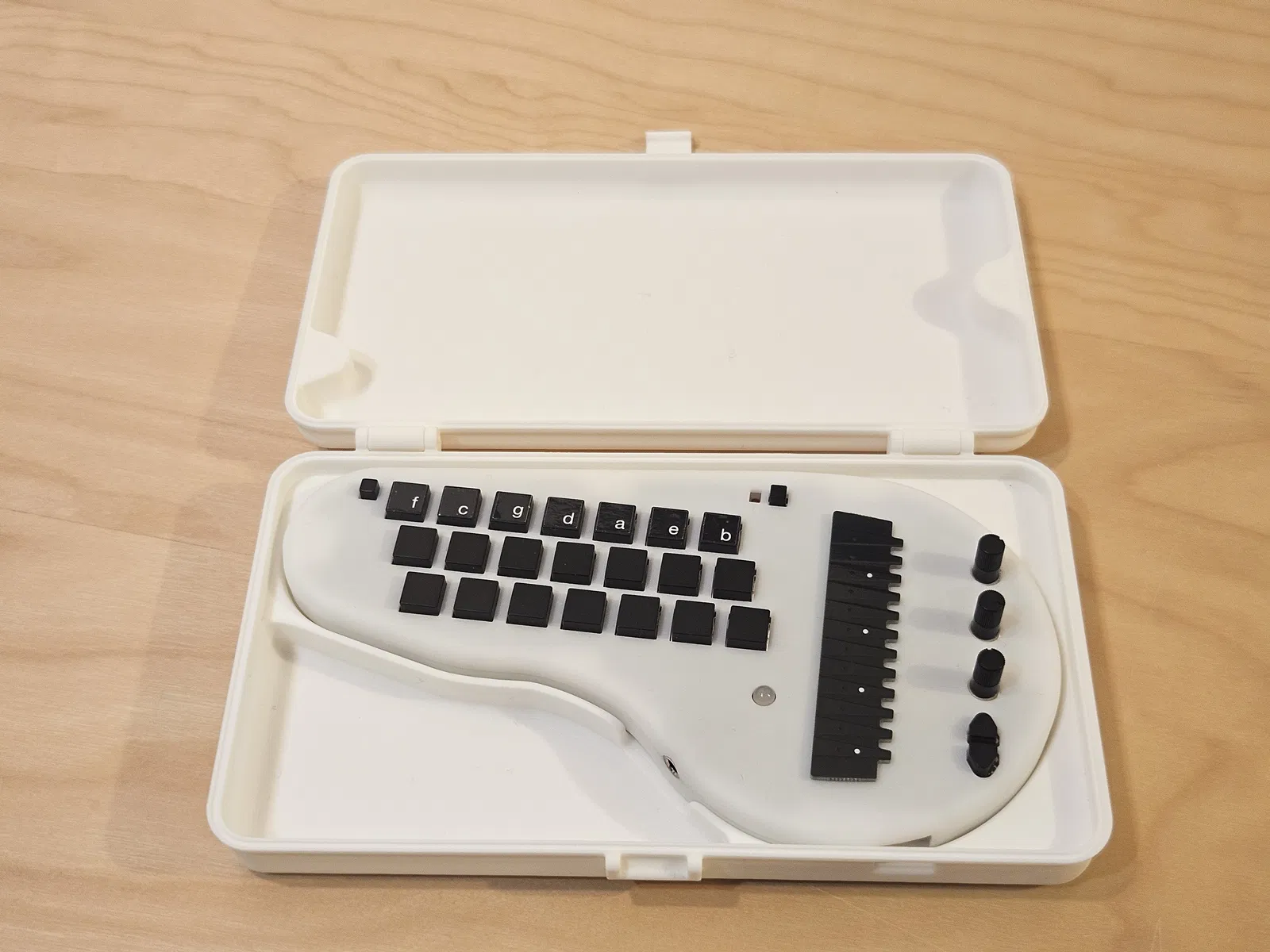Hộp đựng/vận chuyển thiết kế riêng cho Minichord, cho phép chơi và sạc trực tiếp bên trong. Khuyến nghị in với thông số cụ thể để bản lề hoạt động tốt nhất, có thể dùng vít hoặc filament để làm bản lề.