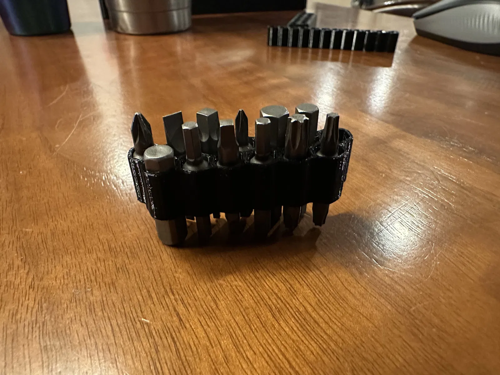 Tui mày mò làm cái hộp đựng mũi lục giác EDC riêng vì không tìm được cái ưng ý. Tui có làm nhiều kiểu cao thấp, dài ngắn khác nhau để phù hợp với các loại túi và ví EDC, tha hồ tùy chỉnh luôn nha. File gốc có sẵn, ai thích thì tải về xài!