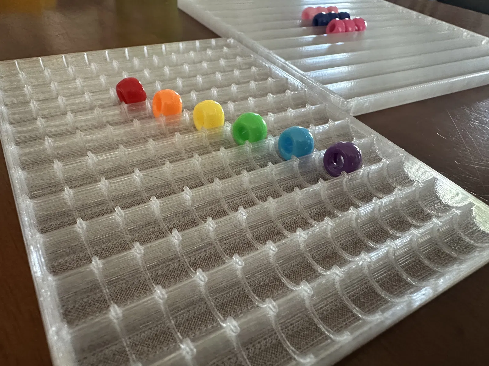 Khay đơn giản giữ và sắp xếp HẠT PONY (6x9mm) cho trẻ em. In bằng PETG trong suốt, bạn có thể đặt khay lên các mẫu in sẵn để tạo ra các thiết kế 2D đa dạng, hoặc đơn giản là dùng để giữ hạt gọn gàng.