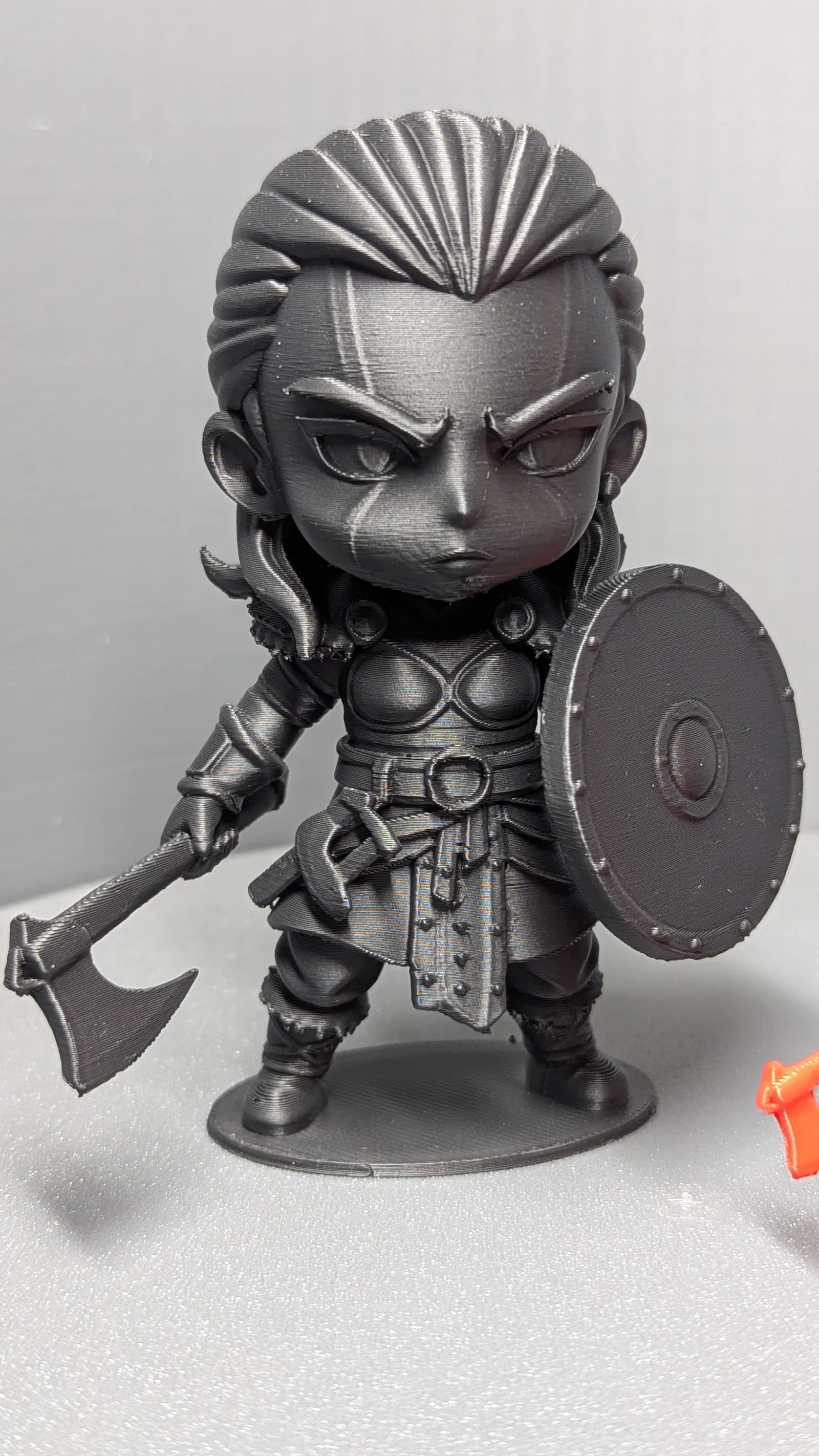Mô hình chibi nữ chiến binh Viking cầm rìu. Đã tối ưu hóa để in ở kích thước nhỏ với Meshmixer, bổ sung thêm tùy chọn kích thước in. Nếu có vấn đề gì, xin hãy báo lại cho tôi biết nha.