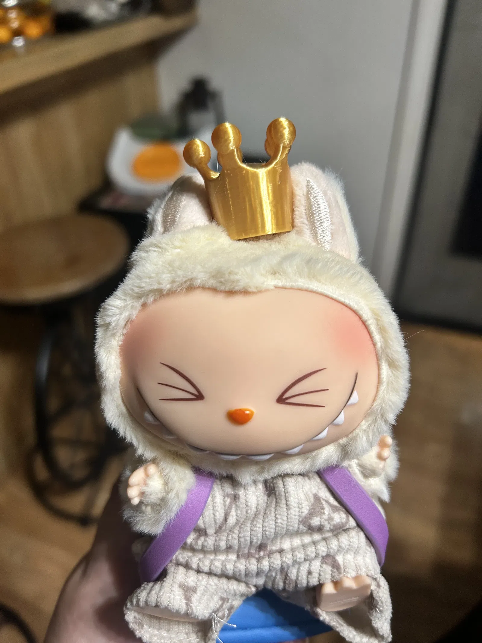 Vương miện được chỉnh sửa lại cho Labubu. Để đội vương miện lên, bạn xoay sợi dây và dùng nhíp để kéo vương miện xuống nha.