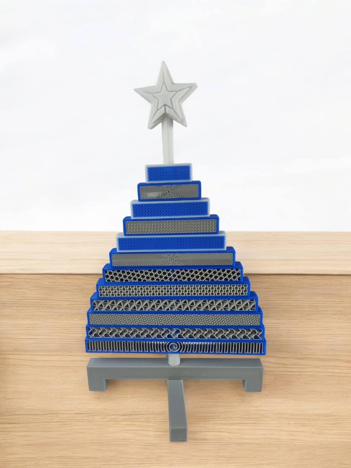 Cây thông Noel sử dụng các mẫu lưới infill với tỉ lệ khác nhau, một món đồ trang trí Giáng sinh đơn giản. Chúc bạn in 3D vui vẻ và có những ngày lễ an lành :)