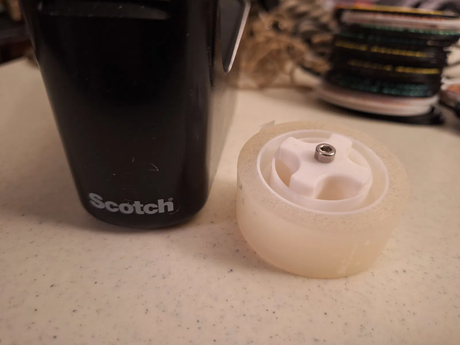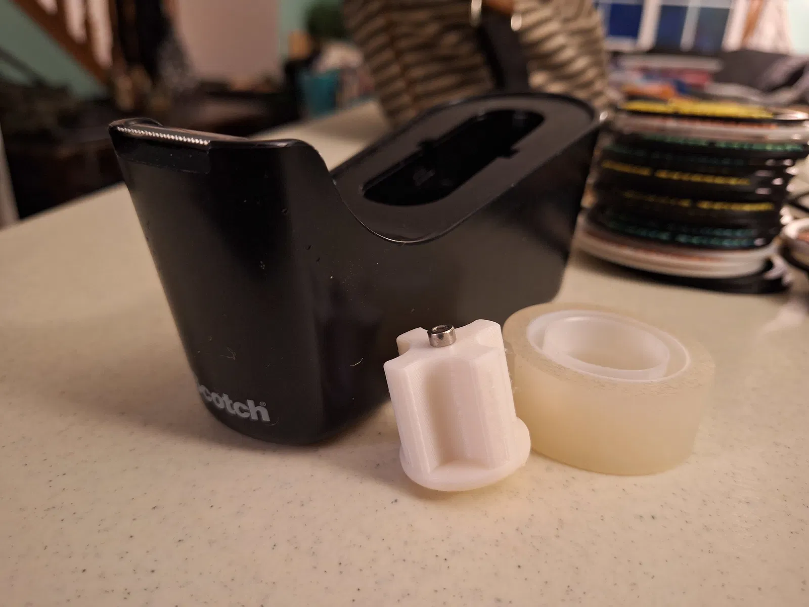Cái ruột máy cắt băng keo Scotch bị mất hả? In cái này xài là ngon lành. Chỉ cần hai con ốc M3x10 hoặc ngắn hơn là được. Phù hợp cho văn phòng, làm quà tặng, quấn băng keo quà tặng.