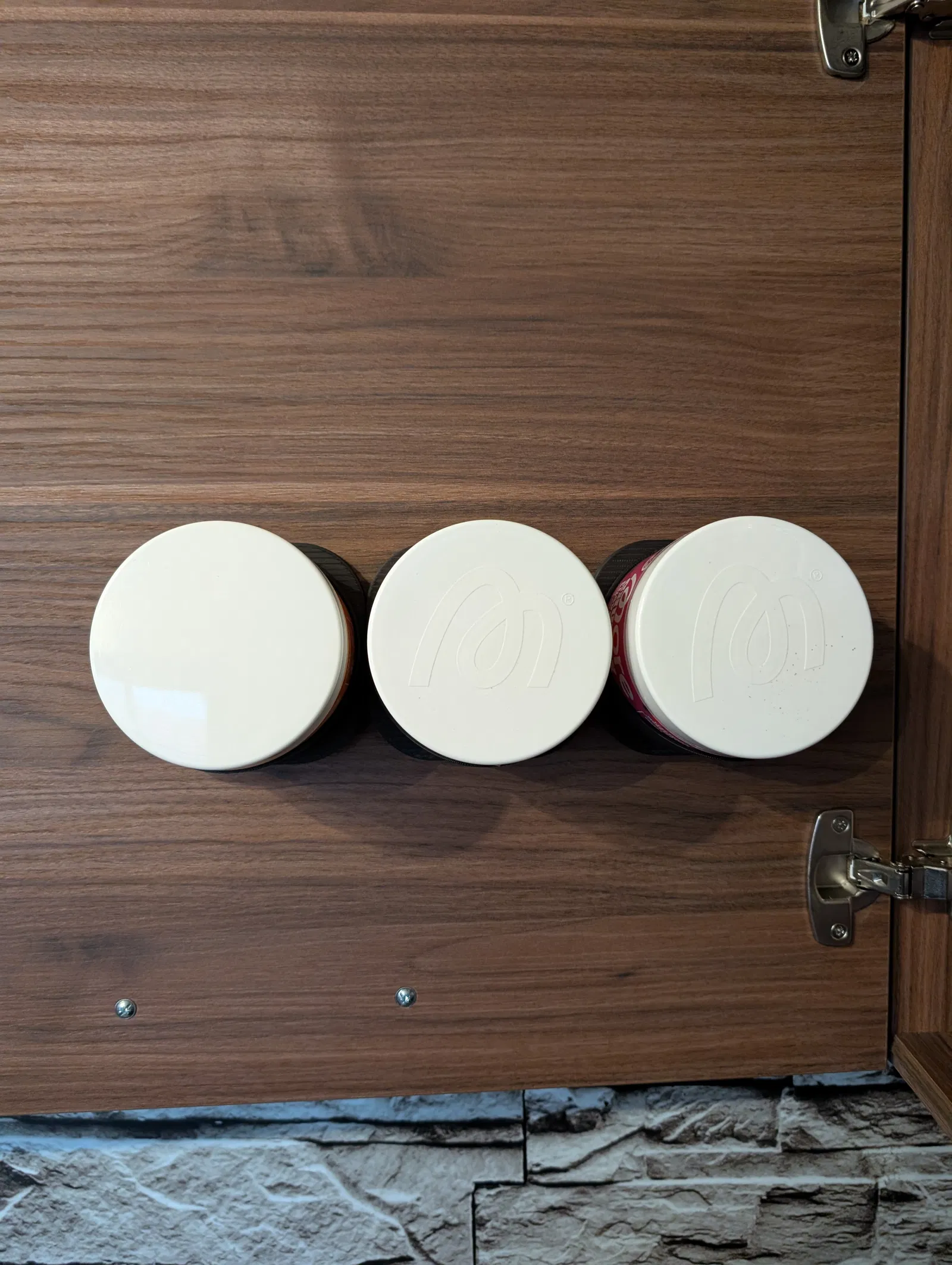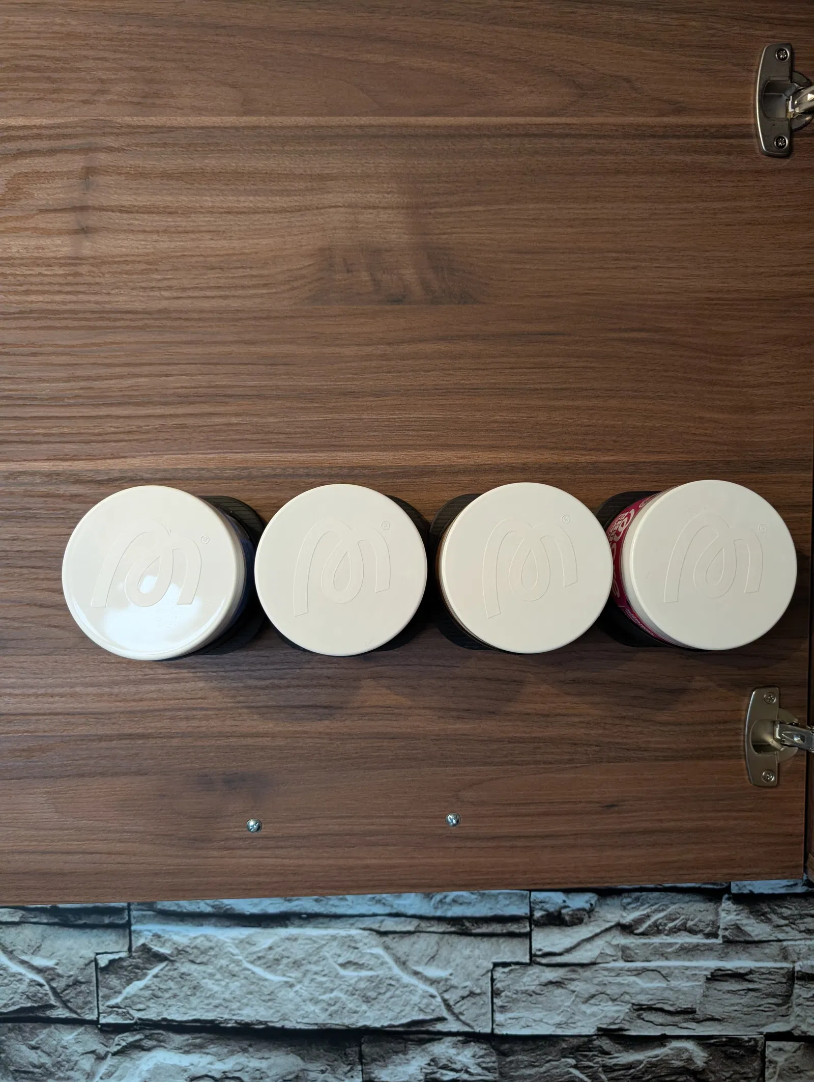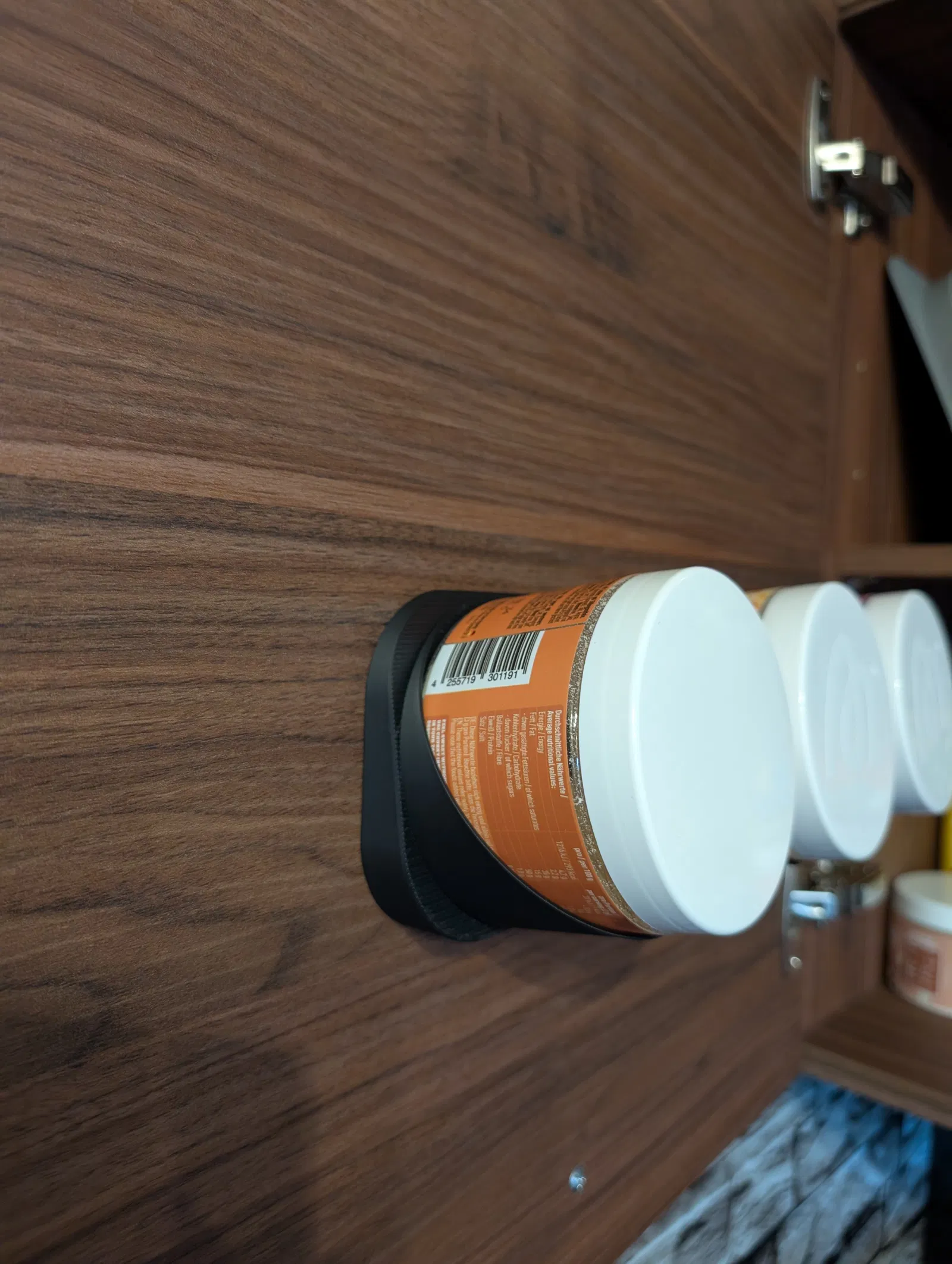 Cái kẹp góc này được thiết kế cho các loại lon hoặc hộp có đường kính ngoài 94mm, giúp bạn cất giữ chúng gọn gàng và dễ lấy bên trong cánh cửa tủ. Giá đỡ chỉ cần gắn bằng băng keo hai mặt—không cần ốc vít, khoan hay dụng cụ nào khác.