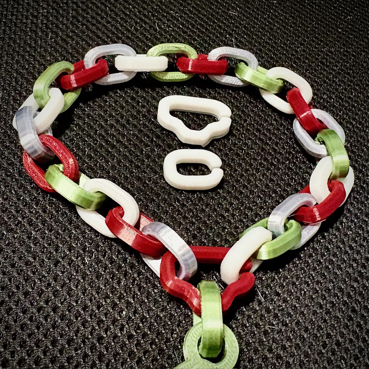 Các mắt xích có thể gắn lại với nhau. Thích hợp cho mọi loại vòng trang trí và cầudrawbridge. Dễ dàng nhân bản và in nhiều màu khác nhau, tạo chuỗi dài hoặc vòng ngắn cho đa mục đích.