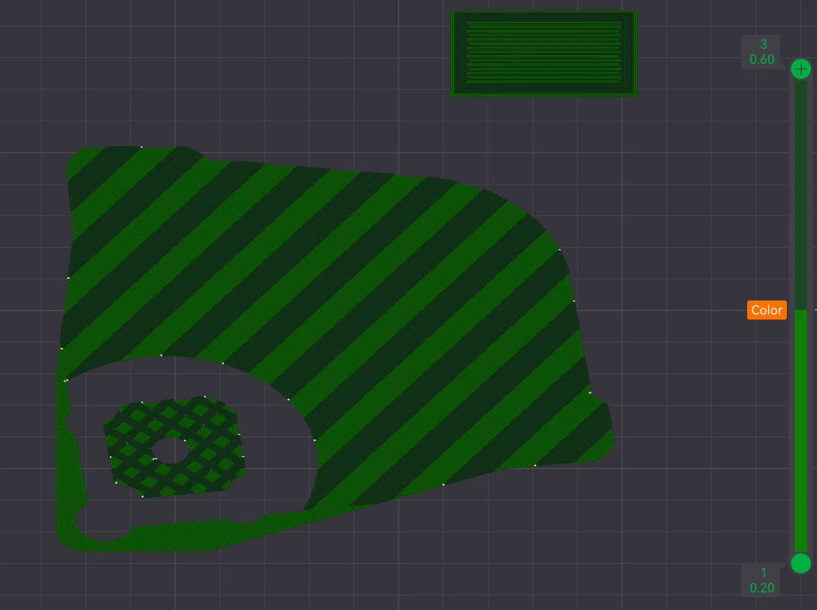 Mẹo In Thông số đề xuất: Tinh chỉnh tính năng hồi dây để tránh bị rớt sợi. Các lớp viền: 2 Các lớp trên: 3 Điền lưới: 15%. Có thể dùng kiểu Lightning.