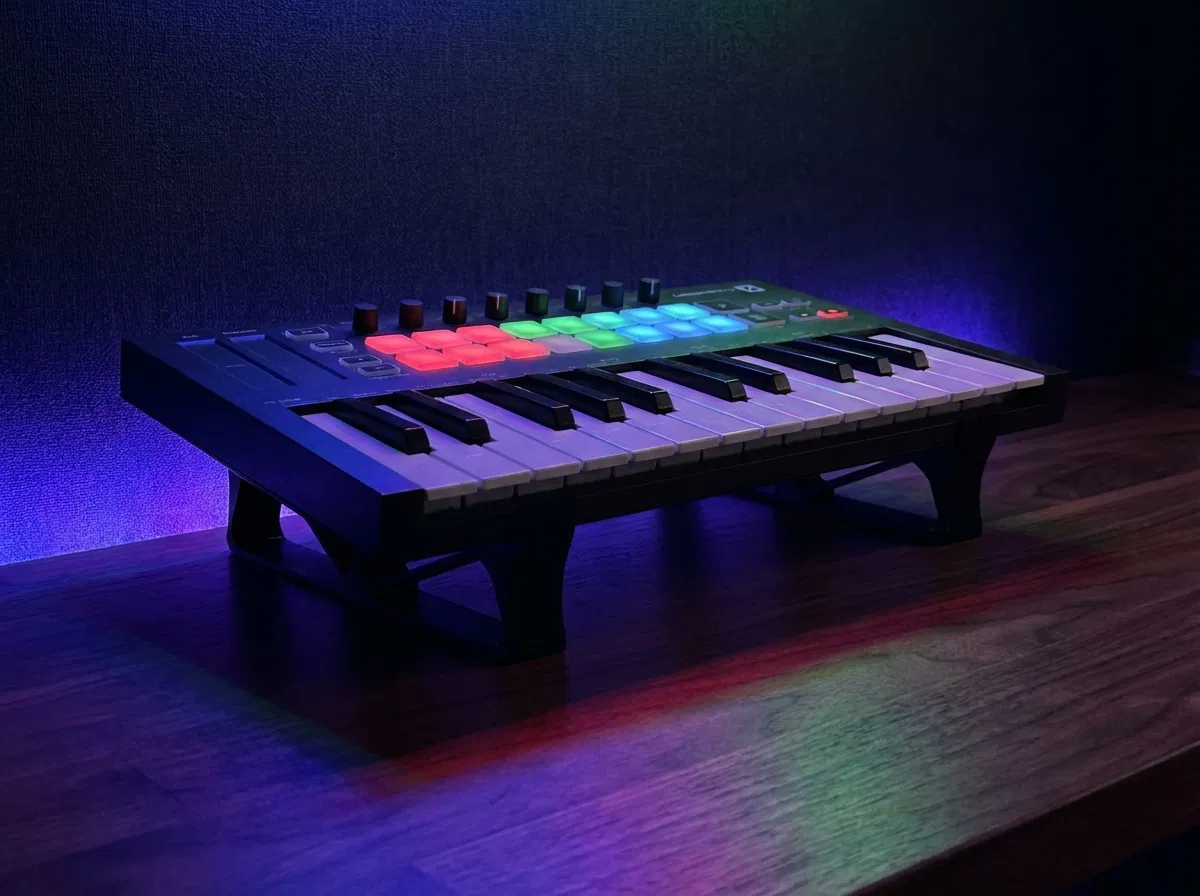 Một cái chân đế đơn giản cho bàn phím nhạc Novation Launchkey Mini đời đầu.