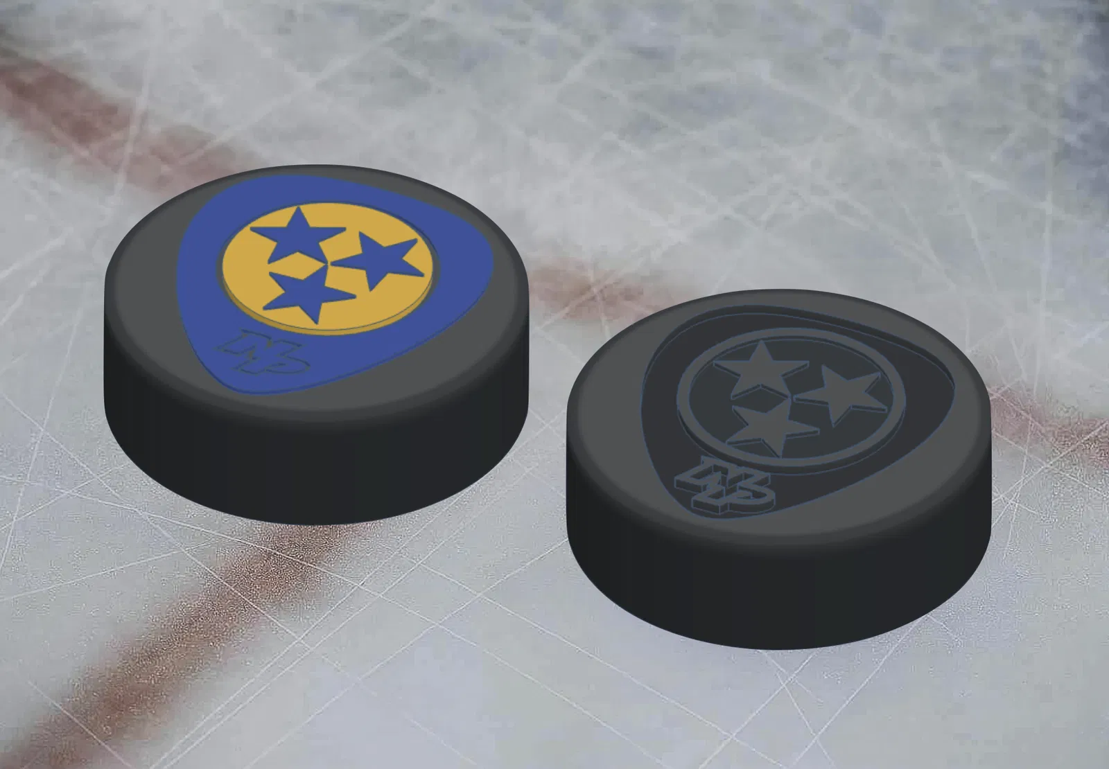 Mô hình logo thay thế của đội khúc côn cầu Nashville Predators trên mặt bánh răng (puck).
