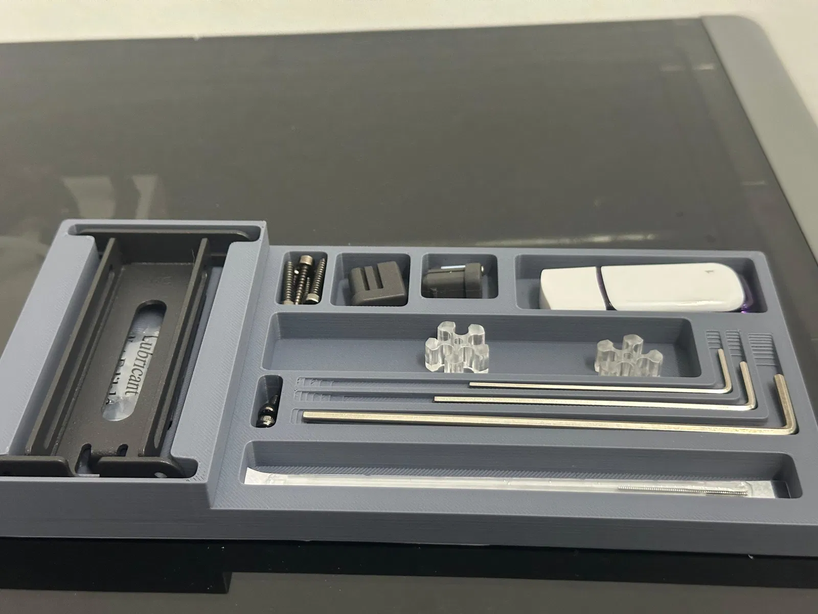 Tôi tạo ra cái khay này để đựng tất cả dụng cụ, ốc vít, phụ kiện và phụ tùng đi kèm với máy Anycubic Kobra S1C. Khay đặt vừa vặn bên cạnh máy in hoặc để trong ngăn kéo, giúp mọi thứ luôn sẵn sàng khi bạn in hoặc bảo trì máy.