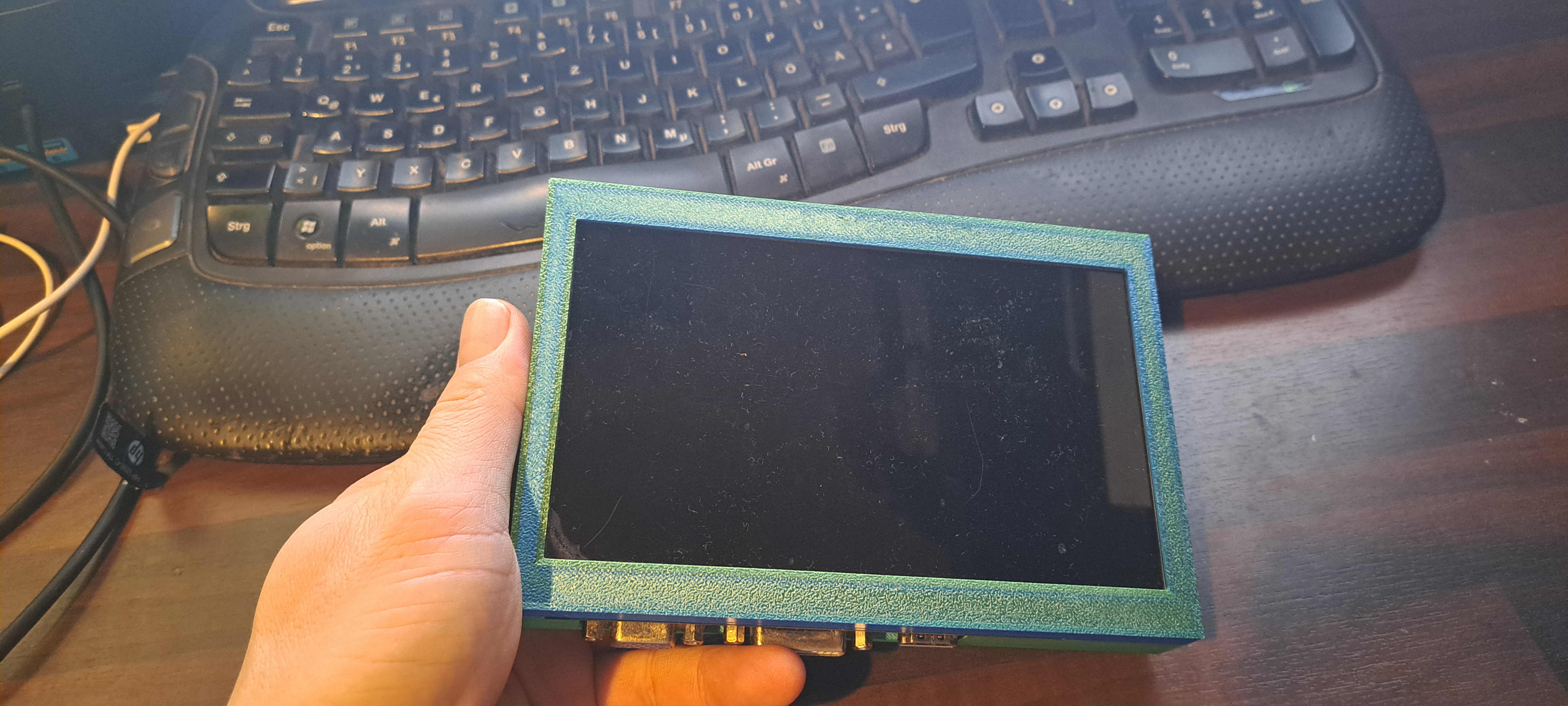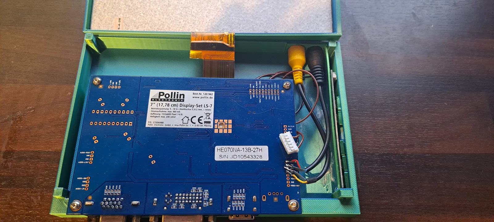 Nên có đế đỡ ở đáy hộp. Dán thanh nhỏ phía sau bo mạch nút để hỗ trợ nó. Mẫu này bao gồm vỏ cho màn hình 7 inch của Pollin.