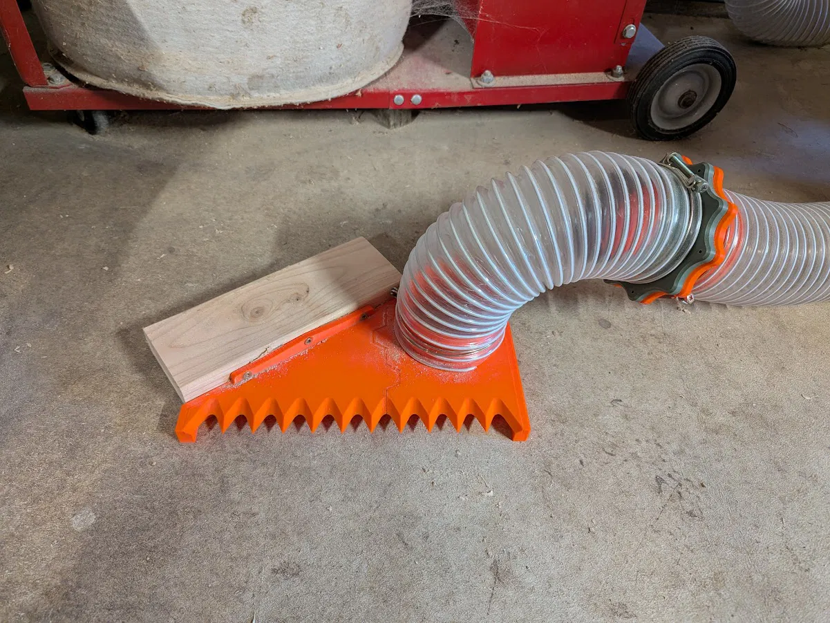 Cái mẫu này là bộ phận hút bụi sàn nhà cho hai loại hệ thống hút bụi khác nhau. Phiên bản đầu tiên dành cho máy hút bụi xưởng 4 inch sử dụng ống mềm 4 inch tiêu chuẩn. Phiên bản thứ hai dành cho máy hút bụi Dewalt 8 gal Shop vac. Thiết kế này được lấy cảm hứng từ các thiết kế khác và làm lại để phù hợp với yêu cầu cụ thể của tôi.
