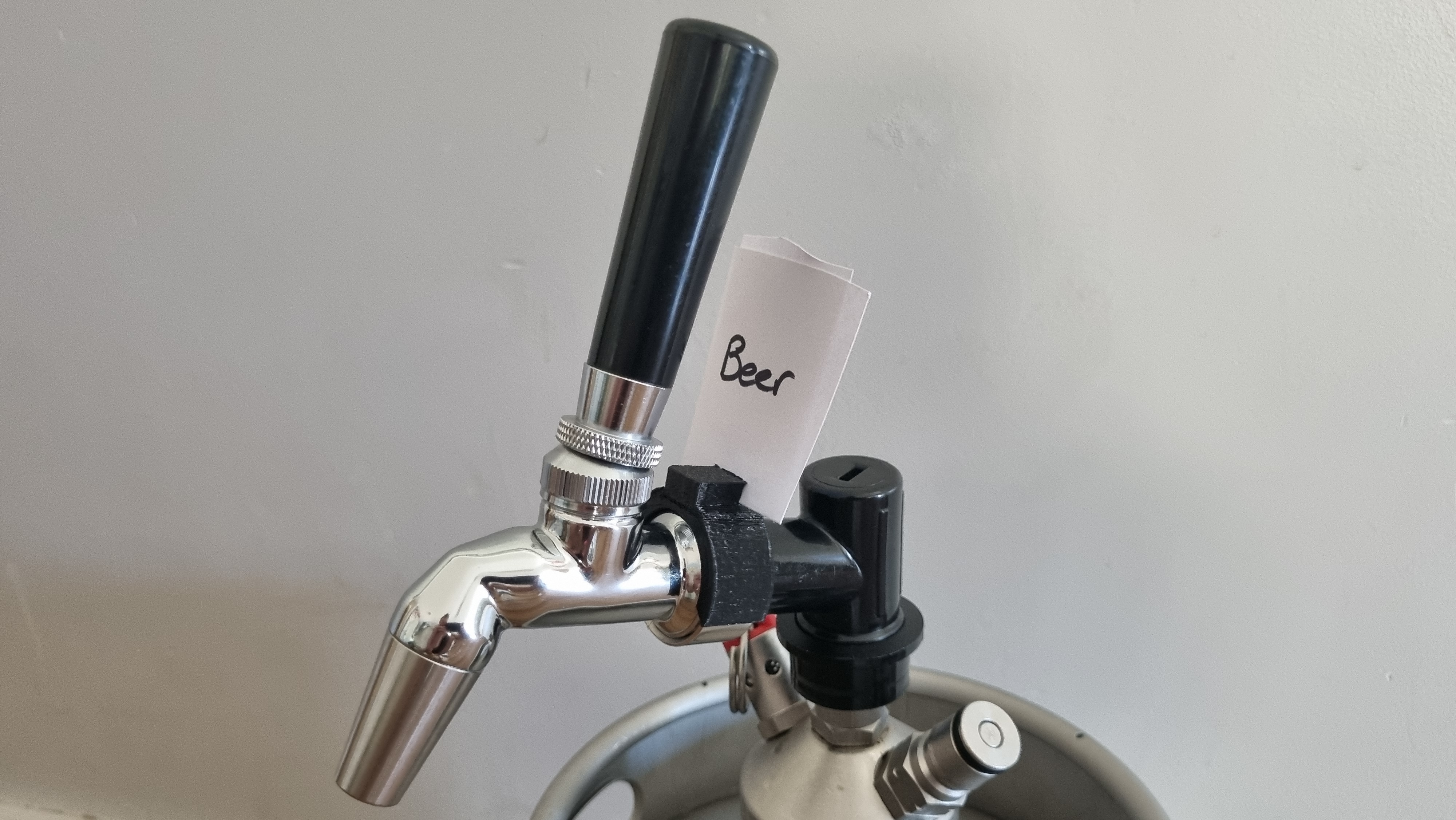 Cái kẹp giữ nhãn bia đơn giản này là dành riêng cho vòi Nukatap. Nó ôm sát, chống trượt và có độ nghiêng 15 độ giúp dễ đọc nhãn hơn. Có thể in bằng PLA hoặc PETG.