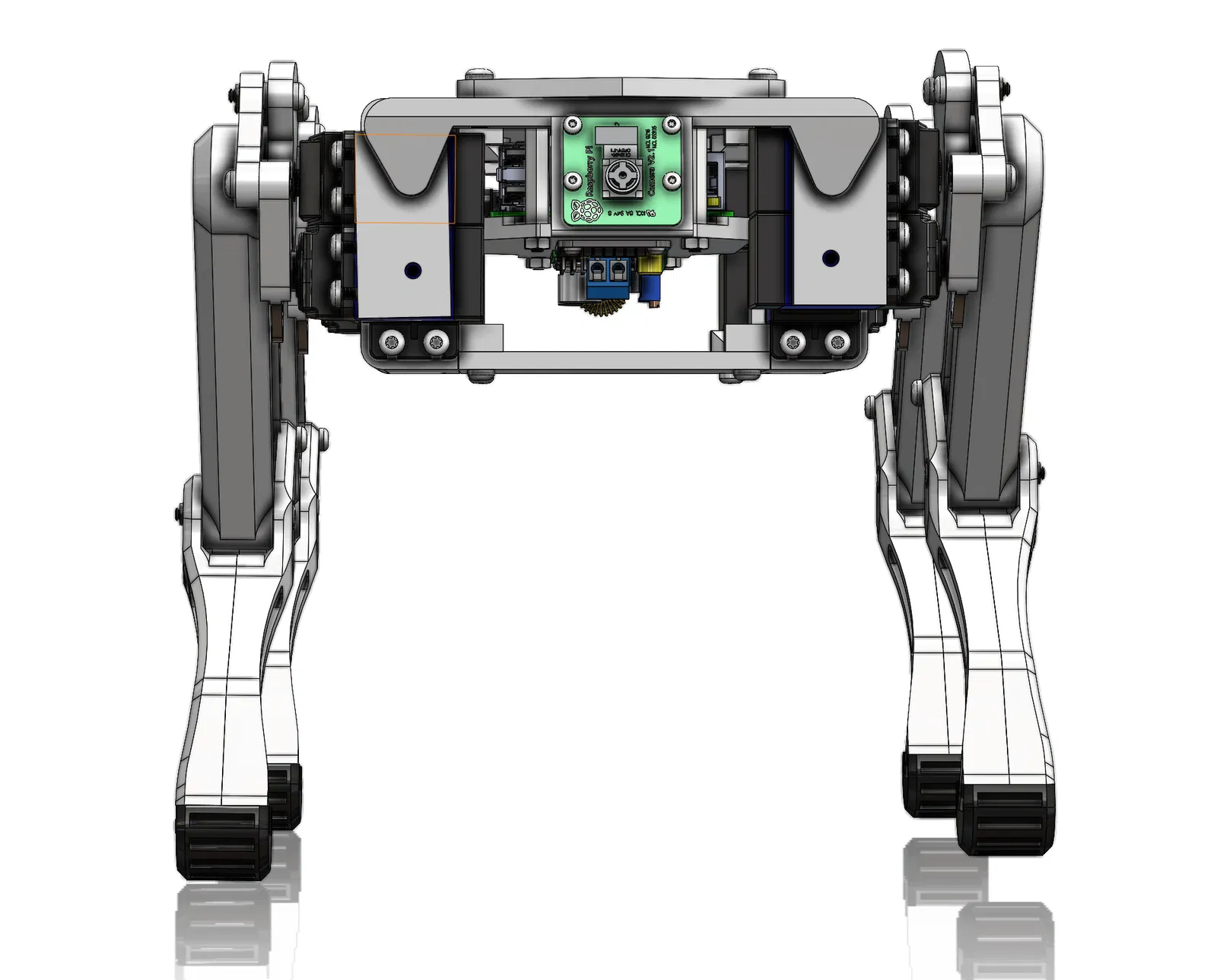 Quadruped I có ít bộ phận hơn. Nó có 10 servo trong đó chỉ có hông trước có thể xoay, làm cho chuyển động của nó bị hạn chế hơn so với người anh lớn Quadruped II.