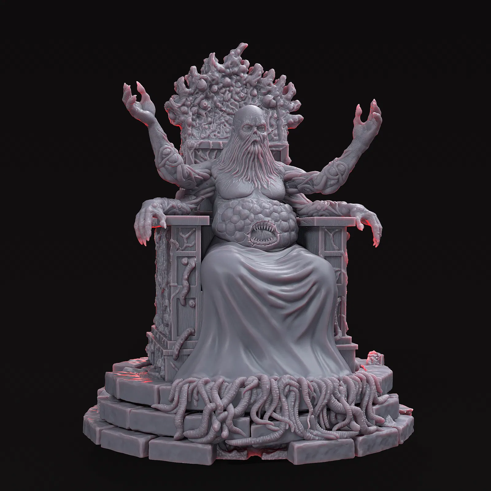 Ngự trị trong mục rữa, The Worm Host không phải thần hay ác quỷ, mà là Con Sâu cổ xưa. Hắn là lăng mộ sống của sự báng bổ, một ngai vàng mọc từ xương và rác rưởi, tiêu thụ mọi thứ. "Thịt là Kinh Thánh, Giun là Chân Lý", hắn chờ đợi để Ánh Sáng phải chết.