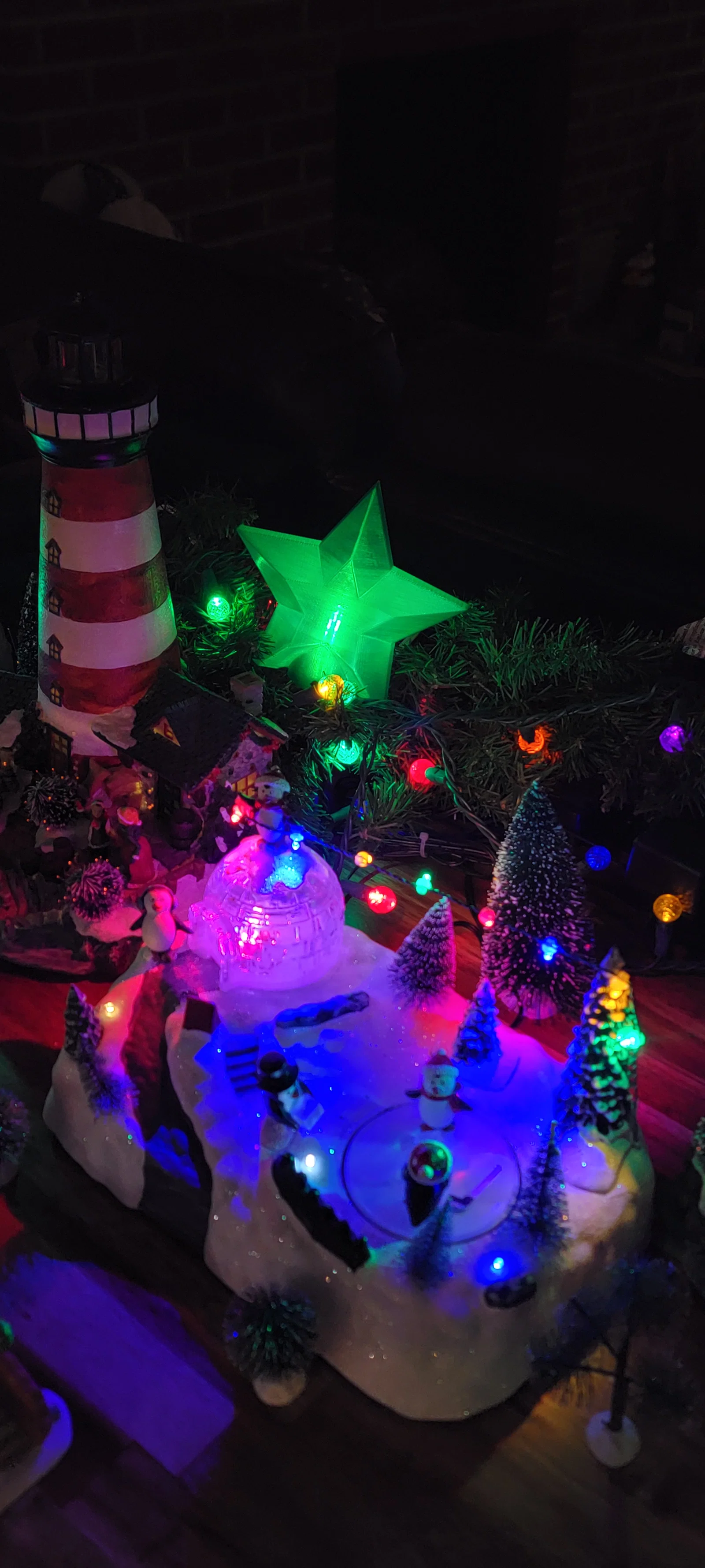 Một ngôi sao tui thiết kế để gắn đèn cho Nhà Cửa Làng Giáng Sinh. In bằng PETG trong suốt, không cần support. Phù hợp để trang trí mùa Giáng Sinh.