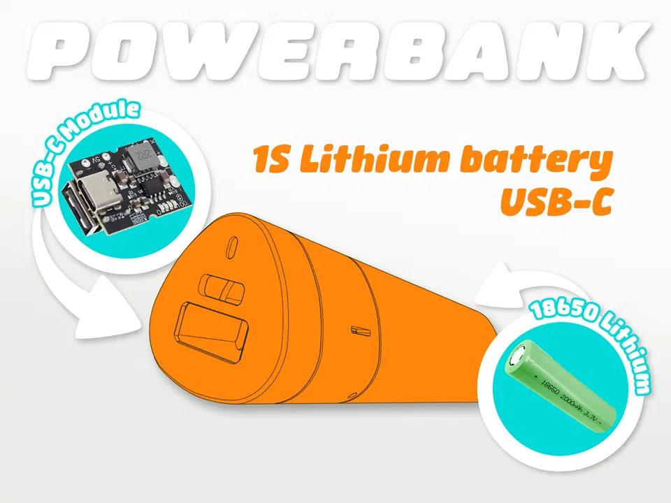 Chia sẻ mẫu vỏ sạc dự phòng cho module IP5306 USB-C, thiết kế cho pin Lithium 1S 18650. Mẫu này có độ sai số thấp, yêu cầu in lớp đầu tiên hoàn hảo. Thích hợp dùng với pin 2000mAh, không cần support hay brim.