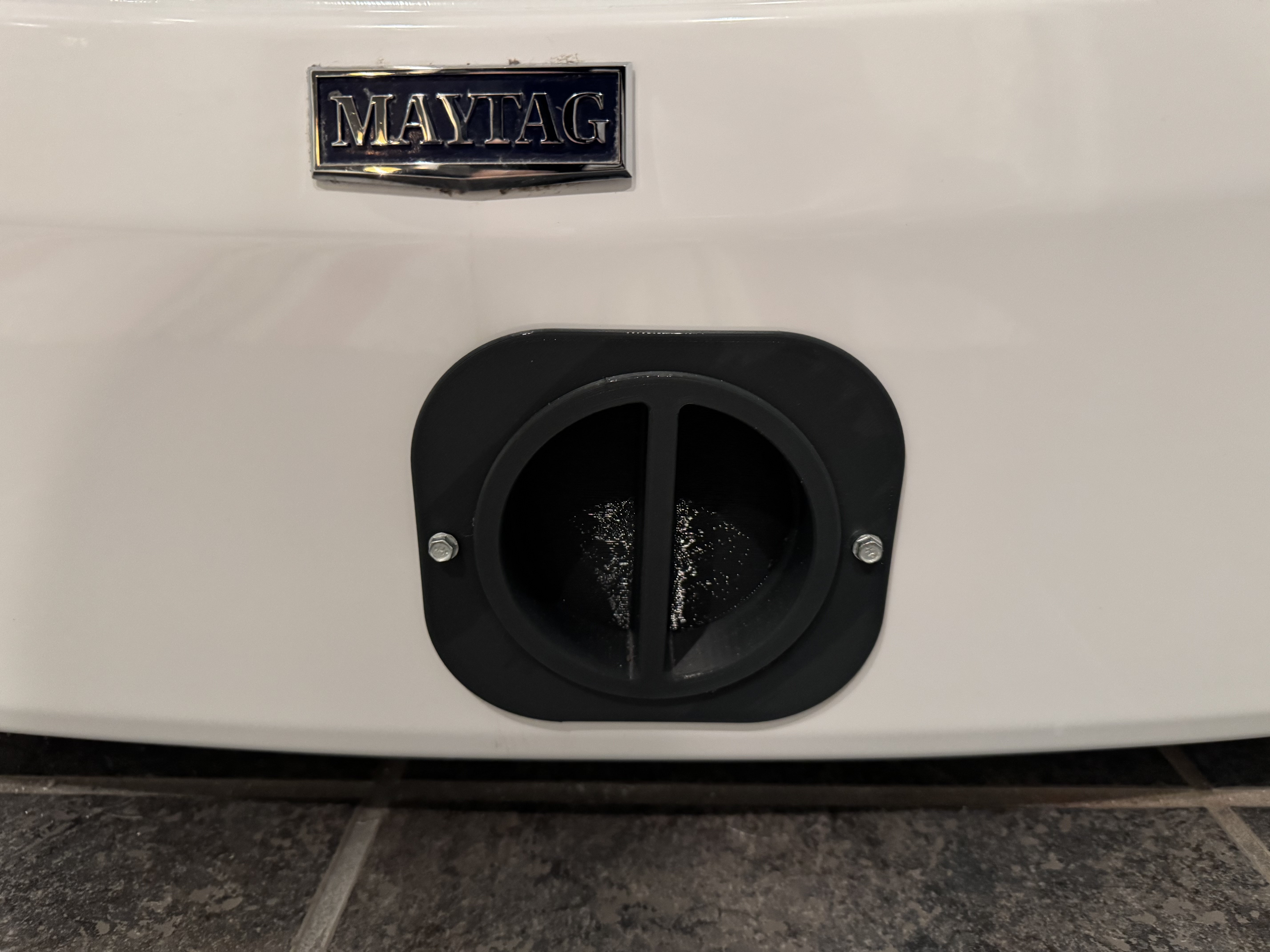 Dễ dàng tiếp cận bơm để lấy rác. Cái máy giặt quần áo này khó mà tiếp cận cái bơm để vệ sinh. Tôi đã dùng mũi khoét lỗ 4 inch để khoét một lỗ ở mặt trước và làm cái nắp này để lần sau cần lấy rác ra khỏi bơm.