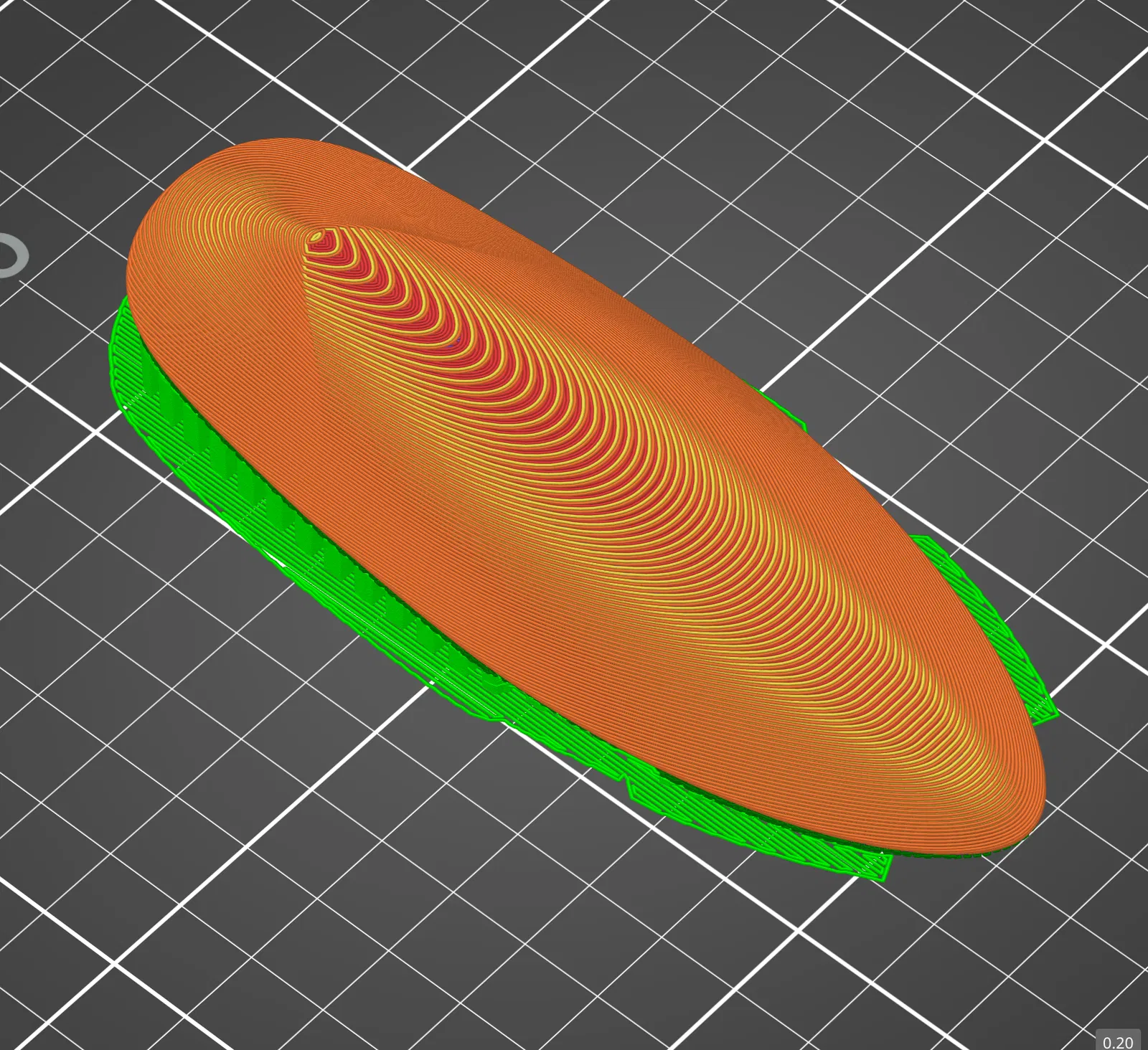 ĐẾ | Lưu ý trong ảnh: có một điểm lồi nhỏ để sơn chữ trong bản in đa vật liệu, sử dụng sợi PLA màu xám đậm hoặc đen. Lớp bề mặt sần sùi sẽ phù hợp với chúng.