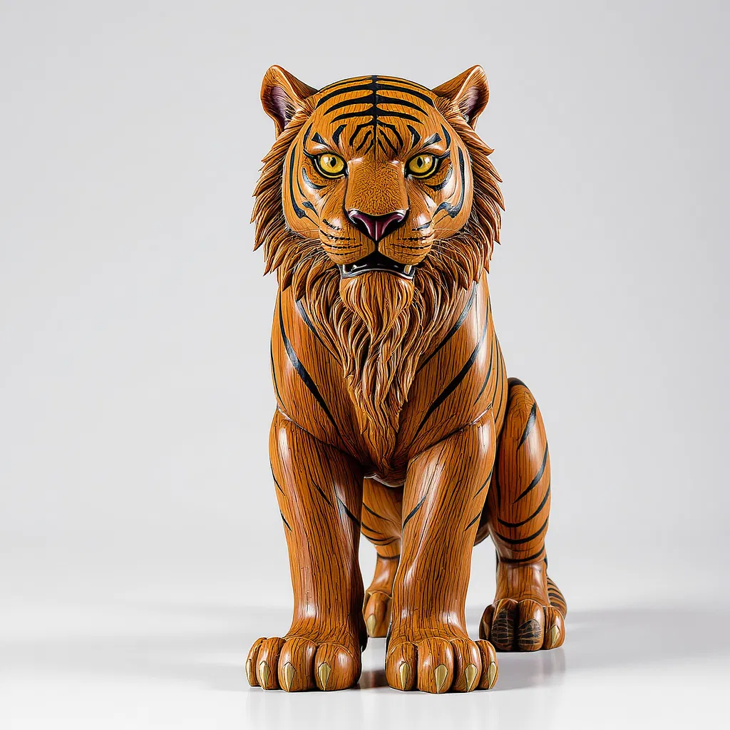 In một tượng hổ bằng gỗ cực ngầu. Mô hình này hoàn hảo cho những ai yêu thích hổ và muốn thêm một chút nét nghệ thuật vào không gian sống của mình. Chất liệu in PLA cho phép tạo ra các chi tiết sắc nét và bề mặt mịn màng.