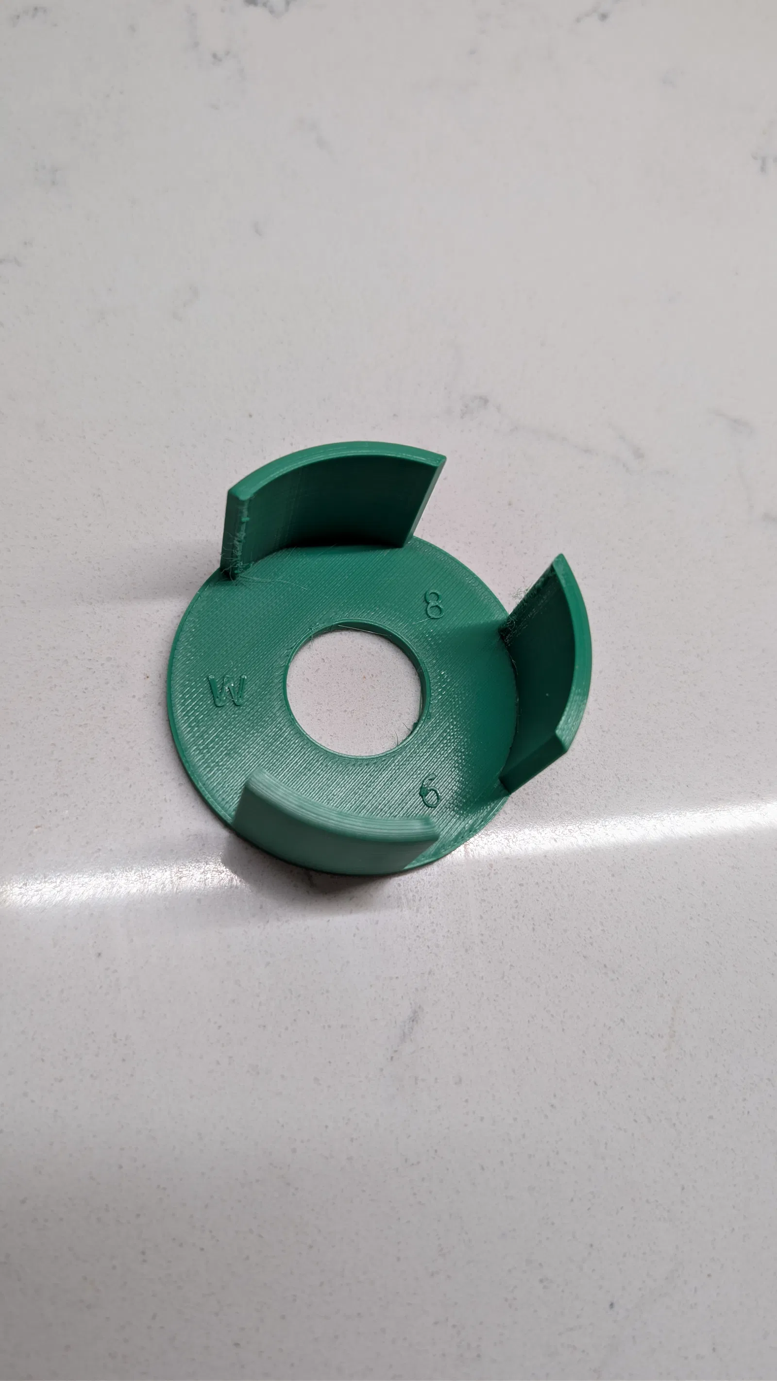 Cái jig này có thể dùng để căn chỉnh khoảng cách cho cả hai loại vòng nguyệt quế Lego 6 cạnh và 8 cạnh.