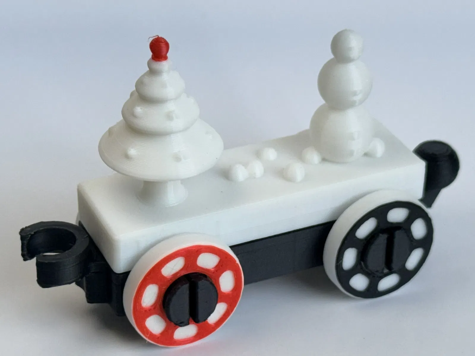 Toa tàu phù hợp với các đường ray gỗ tiêu chuẩn và có thể tùy chỉnh với các phần nóc, họa tiết và phụ kiện khác nhau.
