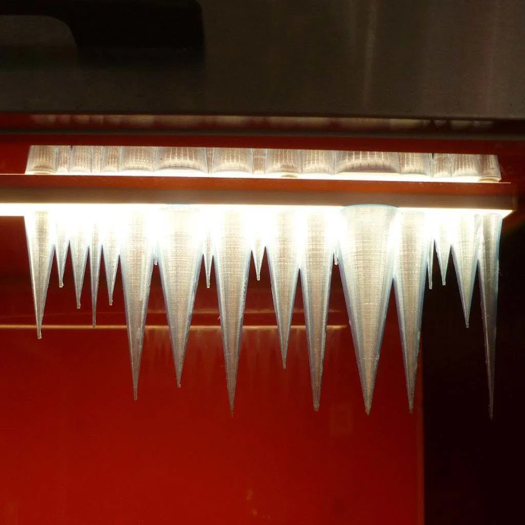 Đây là một module OpenSCAD để tạo ra các chuỗi băng giá dùng để trang trí, nó hoạt động đặc biệt tốt khi in bằng PLA trong mờ. Bằng cách chỉnh sửa tệp SCAD, bạn có thể chỉ định số lượng băng giá, kích thước và góc. Chương trình tạo ra một chuỗi băng giá độc đáo mới mỗi khi chạy, vì vậy nếu bạn thích một cái nào đó, hãy nhớ xuất tệp .STL ngay lập tức vì lần tới khi mở nó sẽ thay đổi! Vui lòng luôn kiểm tra chuỗi trước khi bắt đầu in vì một số tổ hợp giá trị có thể dẫn đến chuỗi có khoảng trống.
