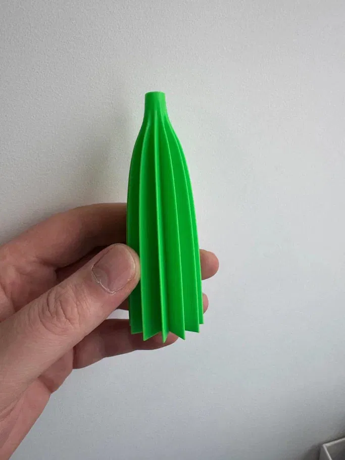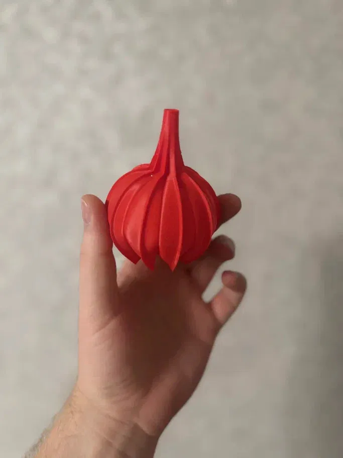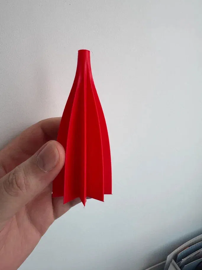 In một lớp vỏ nhựa mỏng bằng chế độ vase mode, sau đó nhúng vào nước nóng và thổi bằng miệng để bung ra — y như làm đồ thủy tinh thổi vậy. Tạo ra đồ trang trí Giáng sinh nhẹ tênh, thành mỏng và đường cong mềm mại.