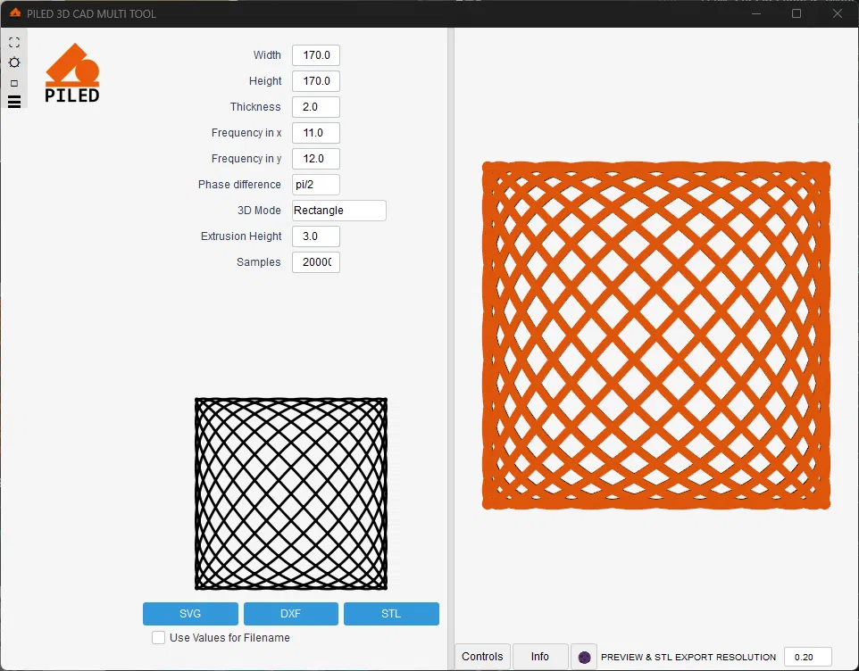 Mô hình 3D này là Mẫu Hình Tròn Lissajous, với kích thước 170x170x3mm. Nó được tạo bằng Công cụ Lissajous trong PILED 3D CAD Multi Tool. Các định dạng file STL, DXF và SVG đều có sẵn. Một thiết kế độc đáo kết hợp nghệ thuật, sóng và toán học.