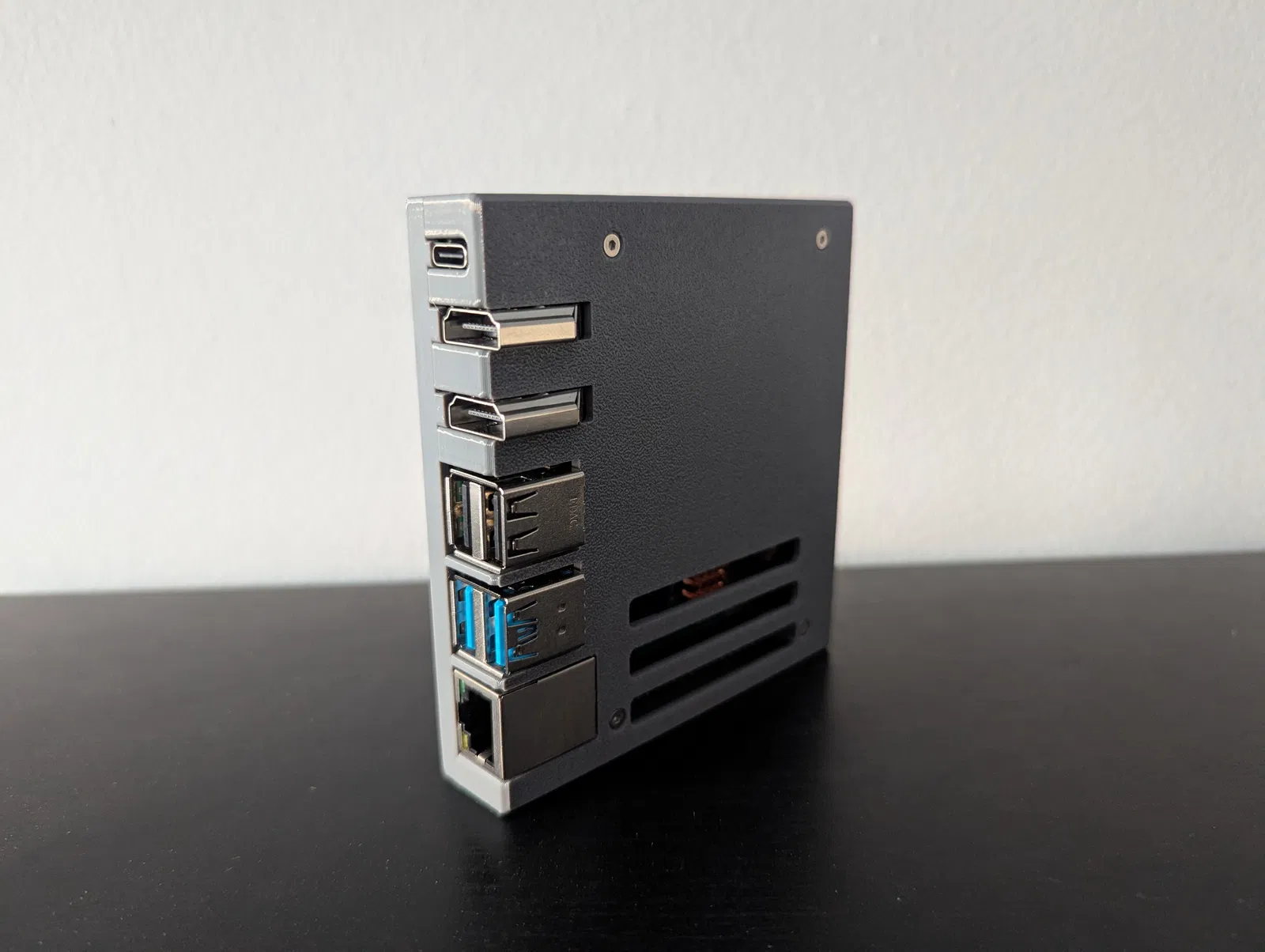 Vỏ case đơn giản dành cho Raspberry Pi 4B và Adapter Đa Năng micro HDMI sang HDMI của Waveshare. Sử dụng ốc M2 để ghép hai nửa, cho phép truy cập GPIO và màn hình phụ. In với độ đặc 15%.