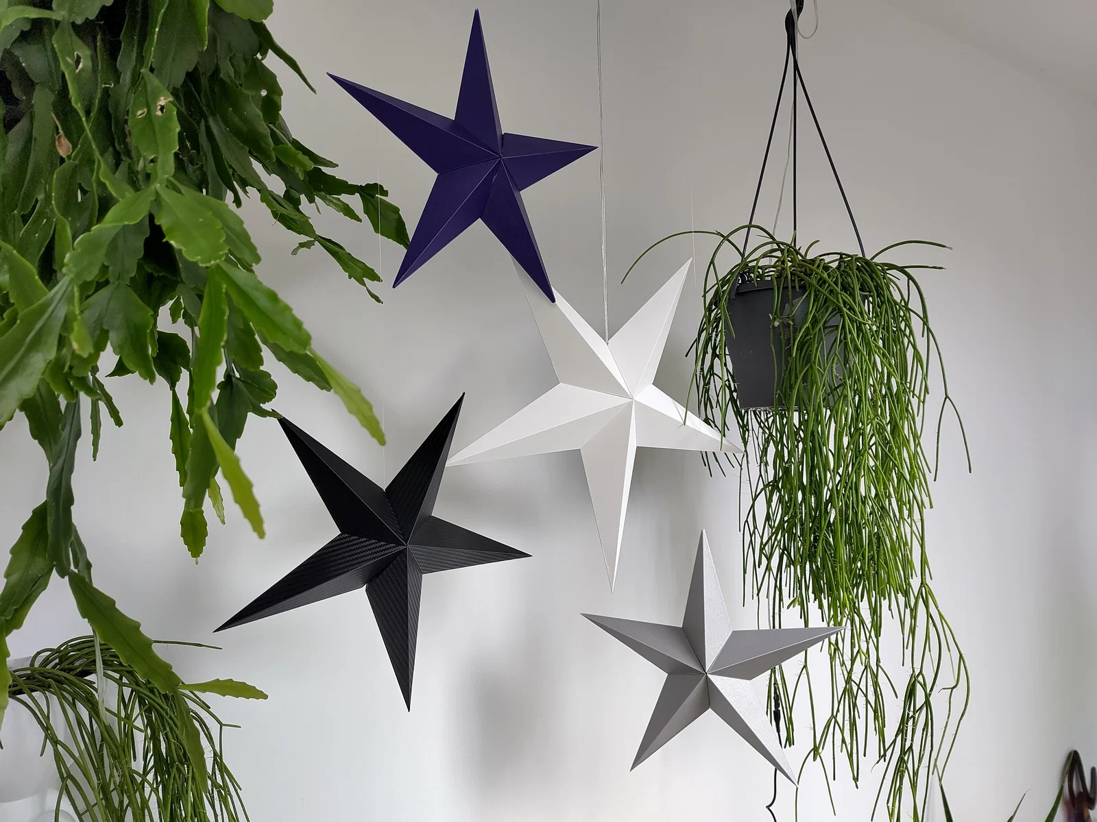 Mỗi cánh được in phẳng trên khay in để vân của lớp đầu tiên trở thành bề mặt ngoài nhìn thấy—lý tưởng cho các loại tấm nền satin, vân nổi, sợi carbon, holographic và các loại tấm đặc biệt khác. Các file STL đi kèm đã được định hướng sẵn để in và lắp ráp thành một ngôi sao có bán kính 20 cm. Nếu bạn thay đổi kích thước, hãy tỷ lệ đồng đều theo mọi hướng. #### Hướng Dẫn In In tất cả các bộ phận phẳng trên khay in để giữ được vân bề mặt. Lớp đầu tiên của lớp vỏ ngoài phải in thành một khu vực liên tục. Đảm bảo các đường của lớp đầu tiên được in vuông góc với trục của mỗi cánh sao—nếu không lớp vỏ có thể bị rách khi gấp lại. Chiều cao lớp: Khuyến nghị 0.2 mm. Khay in: Tấm nền có vân, Satin, Carbon hoặc Holographic cho kết quả tuyệt vời. #### Bộ Phận Cần Thiết Cánh Hướng Lên Cánh Hướng Xuống 4x A 3x A 1x B 2x C #### Hướng Dẫn Lắp Ráp Gấp từng bộ phận dọc theo các đường bản lề được thiết kế. Dán đường nối của mỗi cánh. Sử dụng các bộ gá đi kèm để đảm bảo hình dạng nhất quán (có một chút co giãn). Dán các cánh đã hoàn thành lại với nhau để tạo thành ngôi sao. Khuyến nghị dùng keo CA—việc kẹp khó khăn. Thêm dây treo hoặc dây buộc của bạn trước khi đóng cánh cuối cùng! Treo ngôi sao lên và tận hưởng thành phẩm có vân đẹp mắt. ##### Mẹo Về Độ Khít & Độ Chính Xác Để có kết quả tốt nhất, hãy cố gắng giữ các số đo như trong hình dưới đây trong phạm vi ±1 mm. Điều này sẽ đảm bảo độ khít tốt. Hãy thử lắp khô với các bộ gá trước để xem các bộ phận của bạn khớp với nhau như thế nào! Nếu cần, hãy sử dụng miếng chêm mỏng (như các bản in lớp đầu tiên bị lỗi) để giúp giữ các bộ phận đúng vị trí trong khi dán. ##### Chia Sẻ Sản Phẩm Của Bạn! Nếu bạn in ngôi sao này, tôi rất muốn xem kết quả của bạn. Đăng một sản phẩm đã làm và khoe vân bạn đã chọn, màu sắc và bất kỳ biến thể sáng tạo nào! ##### Cập Nhật 2025-11-30: Đã sửa lỗi file B.stl