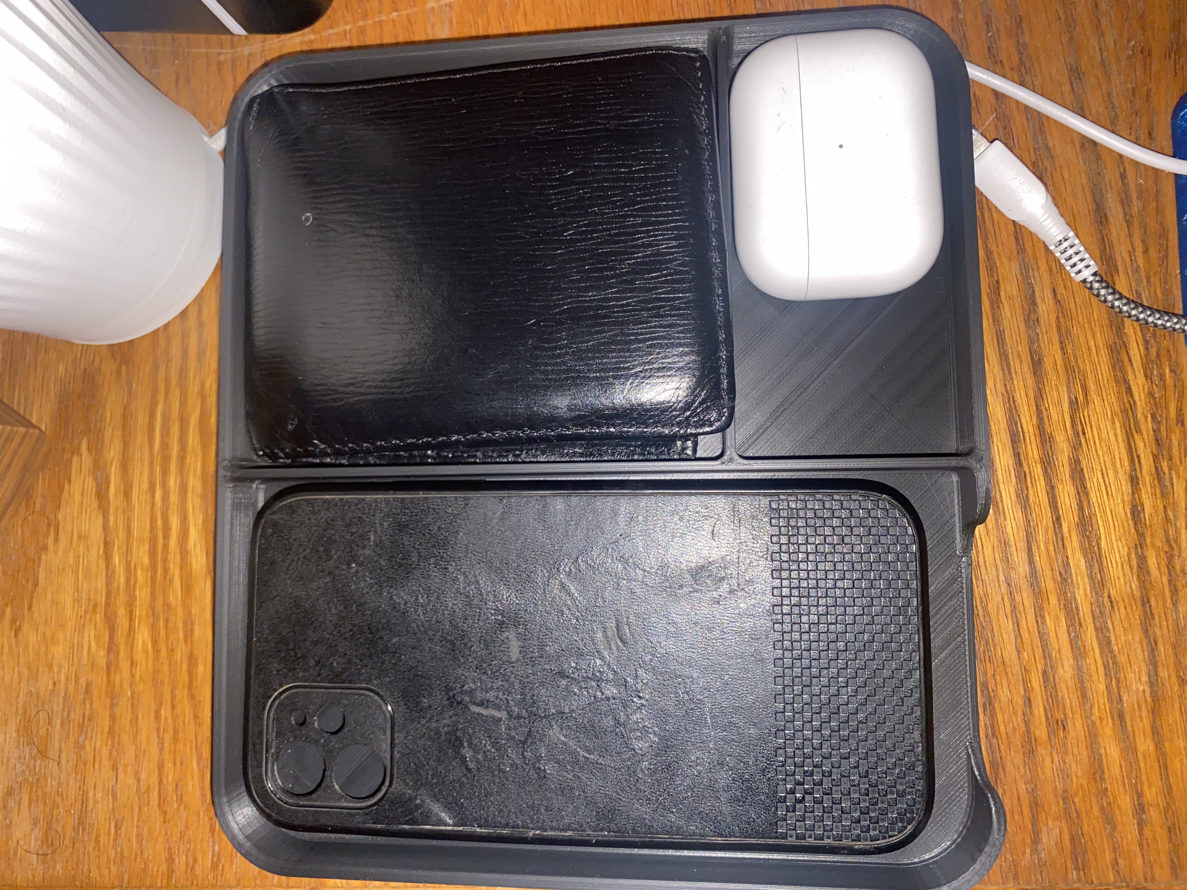 Chiếc khay này giúp bạn sắp xếp điện thoại, ví, tai nghe Airpods và các vật dụng khác trên đầu giường một cách ngăn nắp. Thiết kế nhỏ gọn, phù hợp để giữ những món đồ thiết yếu của bạn luôn trong tầm tay và gọn gàng.