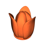 Một bông hoa tulip đơn giản kèm đế tròn nhỏ, có thêm phiên bản low-poly. Mẫu này được tạo bằng công cụ điêu khắc Fusion 360.