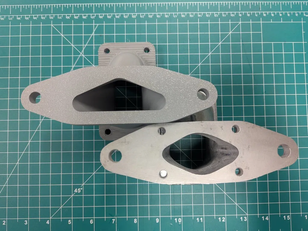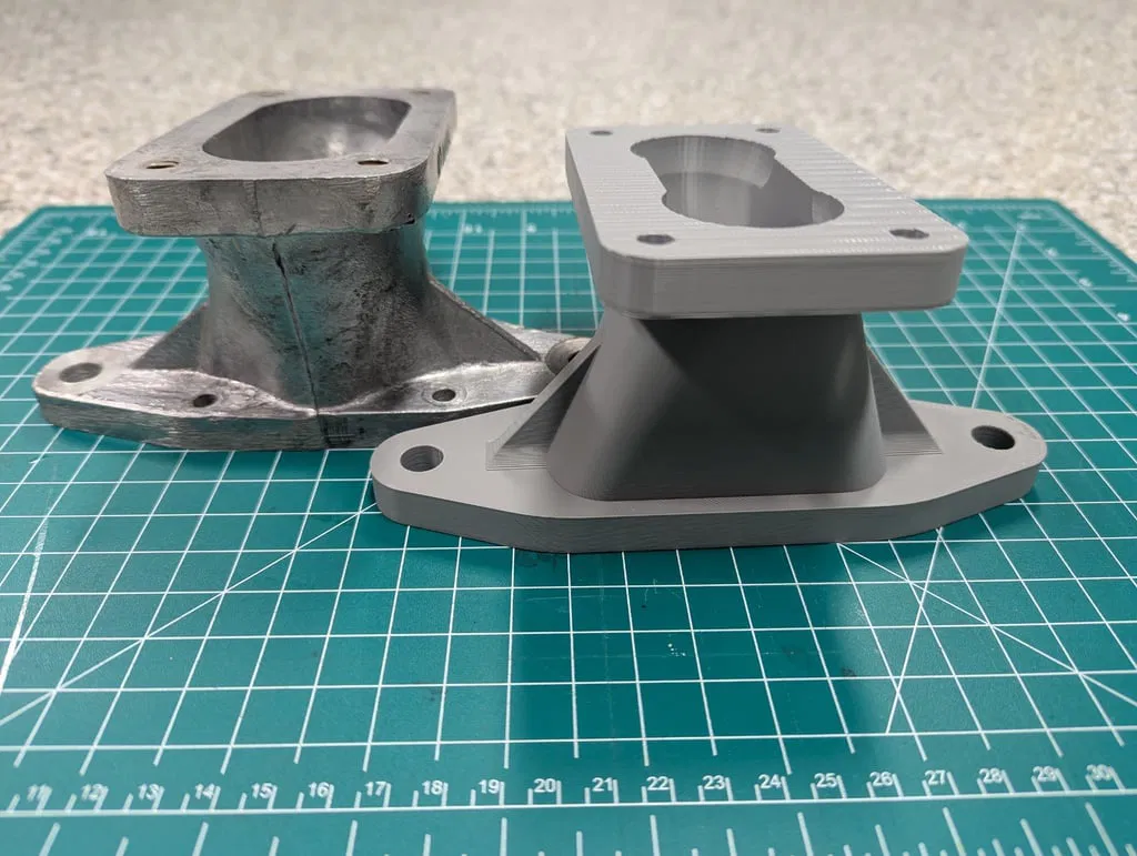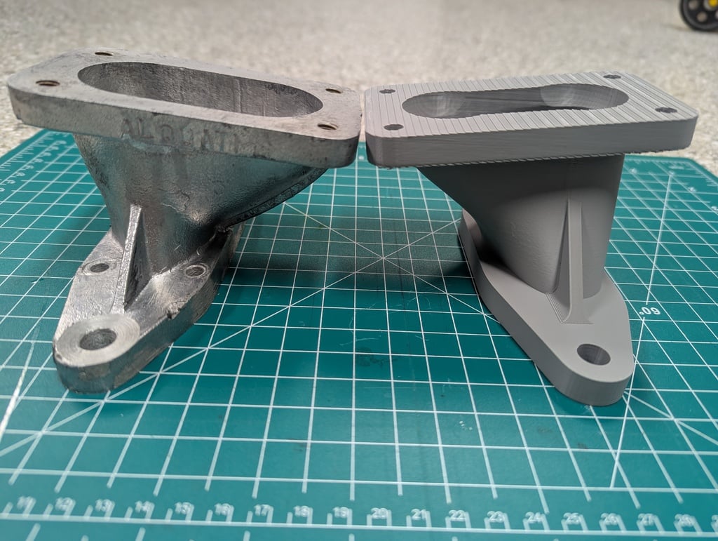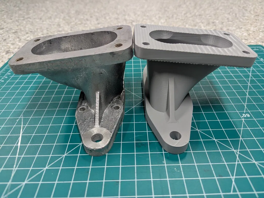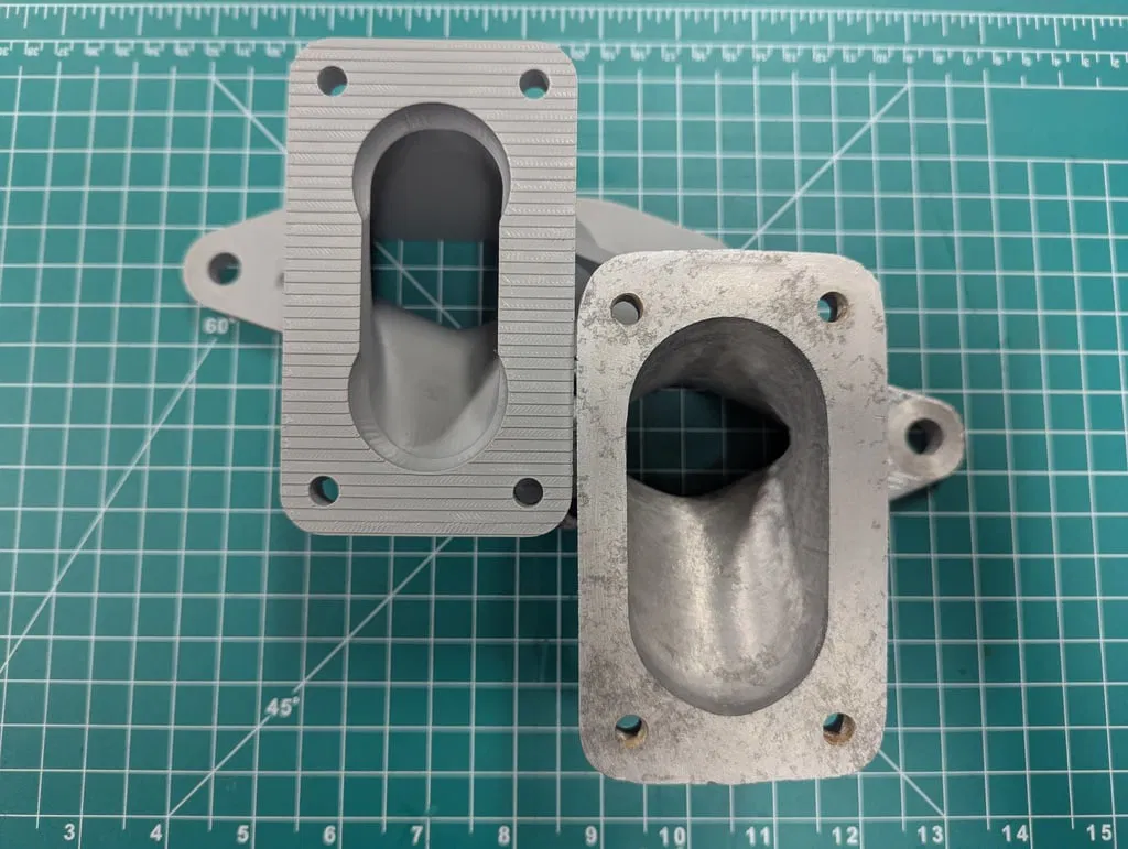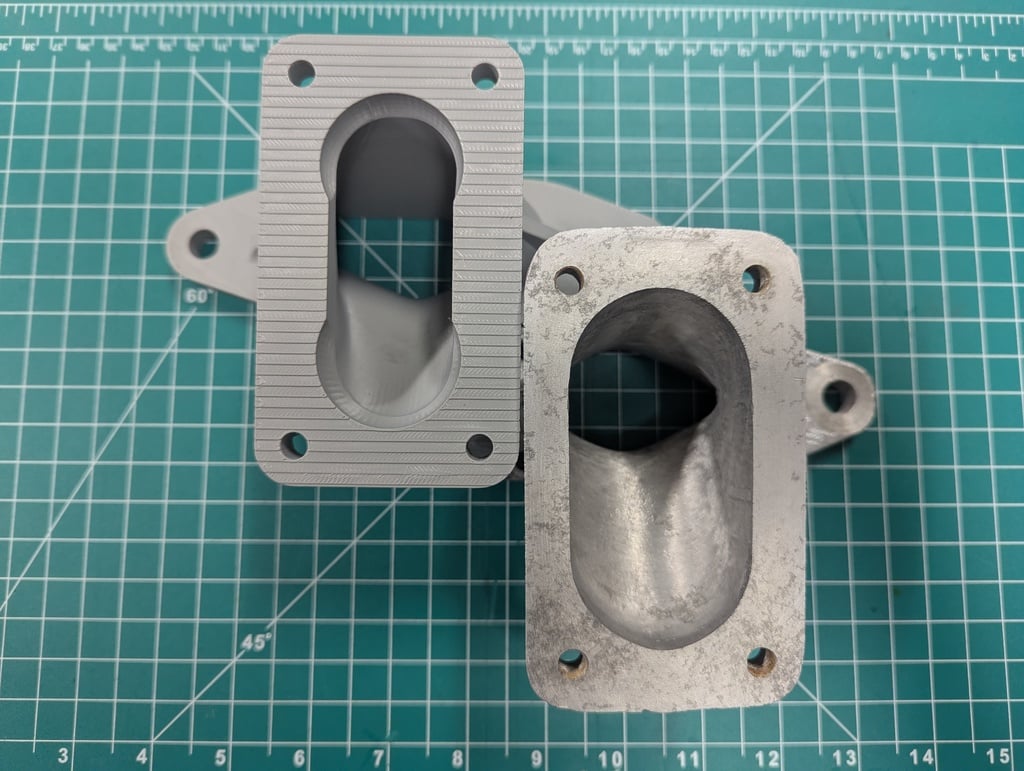 Các mặt bích lắp ráp có kích thước khoảng 11mm, thành ống góp dày 5mm và cao 79mm. Các lỗ gắn bộ chế hòa khí có kích thước 46mm x 93mm và các lỗ thông hơi có đường kính 36mm – phù hợp với Weber 32/36DVG hoặc 36DCD, v.v. Bạn sẽ cần tạo ren cho bốn lỗ trên đỉnh để lắp bu lông hoặc khoan chúng để bắt ốc.