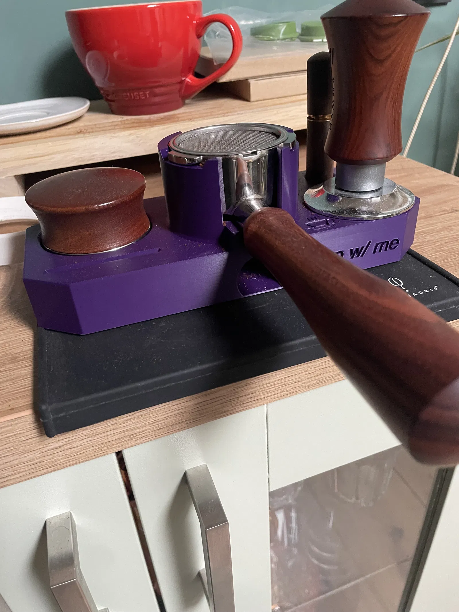 Ngoài ra, tui còn thiết kế một cái phễu định lượng có từ tính, kết hợp hoàn hảo với portafilter.