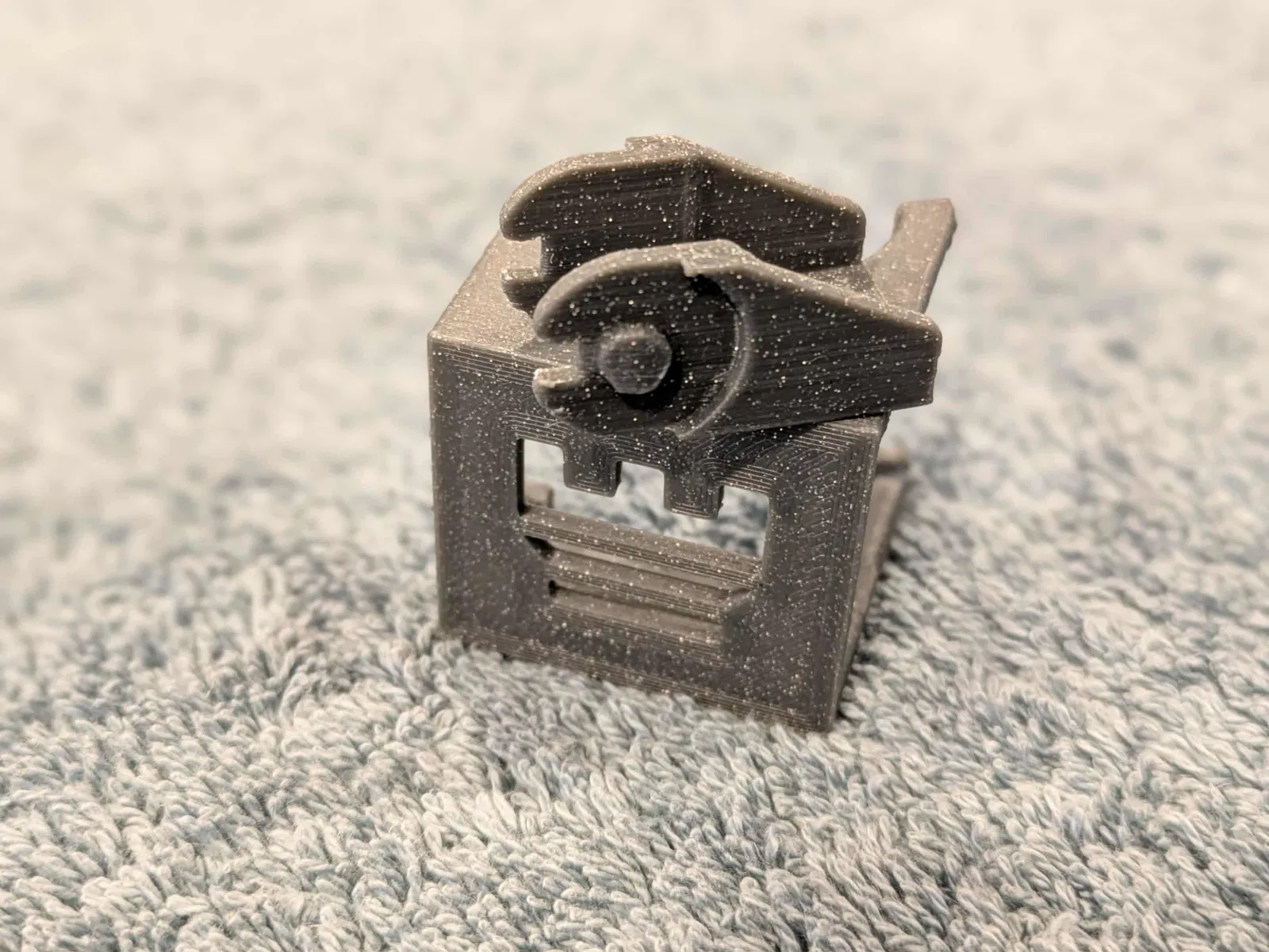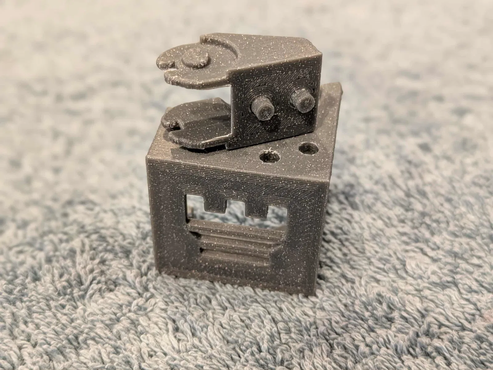 - Tôi đã cân nhắc việc kết hợp giá đỡ giường trên và đầu dây xích cáp thành một bộ phận in duy nhất, nhưng điều đó sẽ làm tăng đáng kể độ phức tạp khi in. Sử dụng một ít keo siêu dính giúp các bộ phận đơn giản và dễ in.
