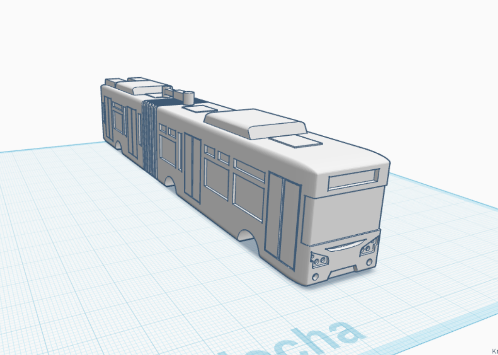 Mô hình xe buýt Iveco Urbanway 18M Hybrid được tạo ra trong Tinkercad dựa trên hình ảnh thực tế. Xe buýt này thuộc đội xe buýt mới nhất của Praha (DPP).