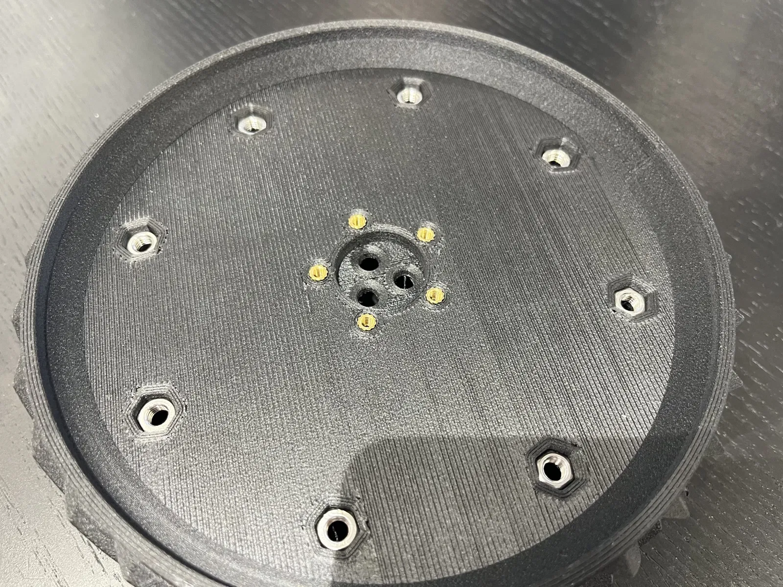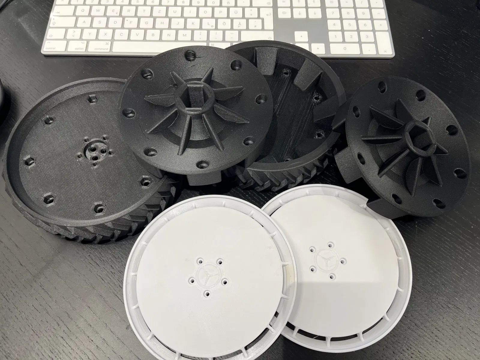 Bánh xe dẫn động với nắp trang trí, có thể điều chỉnh theo sở thích. Được in từ ba phần.