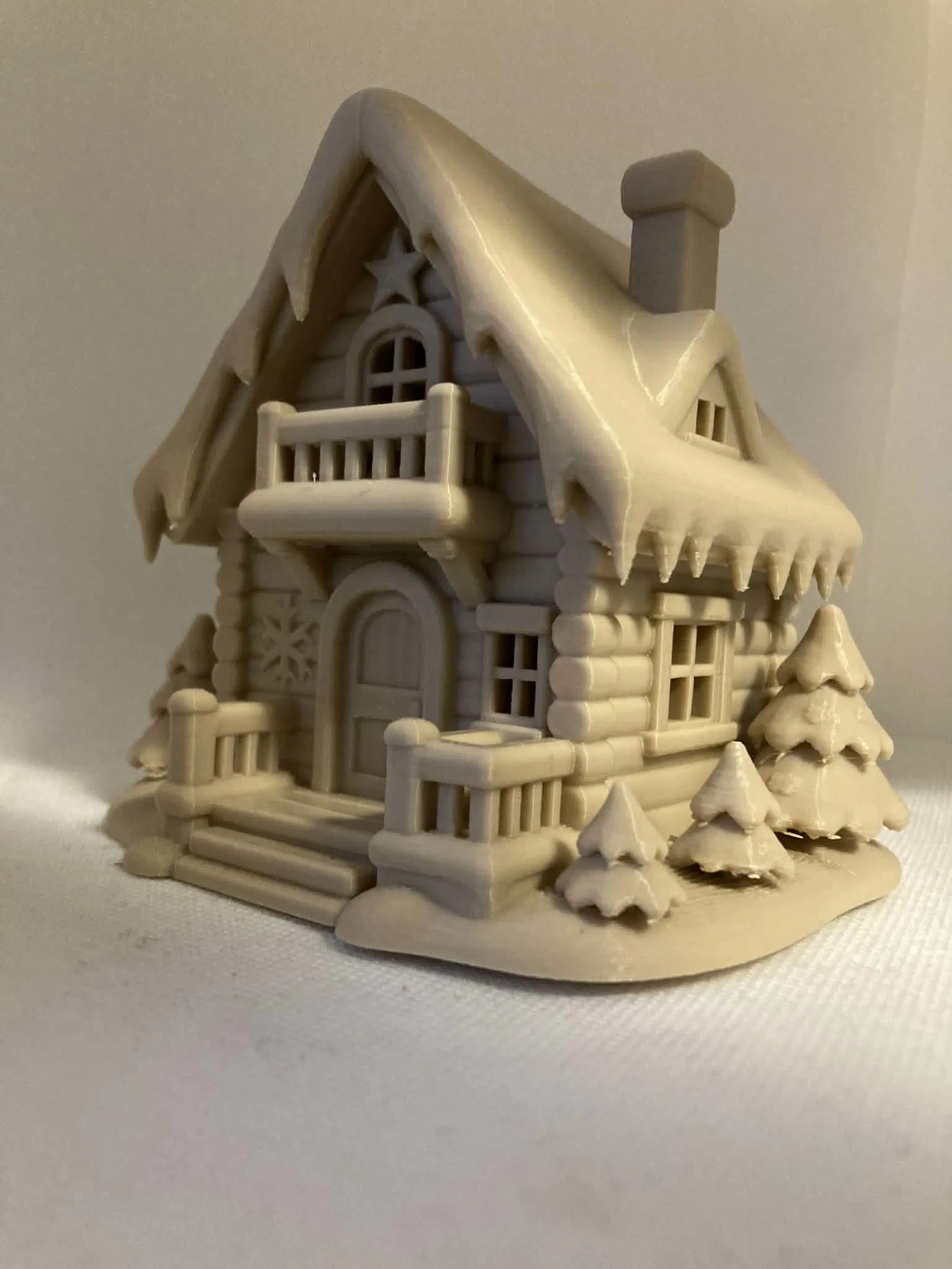 Căn nhà gỗ mùa đông phủ tuyết chi tiết này mang đến không khí ấm cúng, lễ hội cho bất kỳ không gian nào. Ngôi nhà có thiết kế kiểu log cổ điển với mái nhà, ban công, hiên và cây thông bao quanh phủ đầy tuyết.