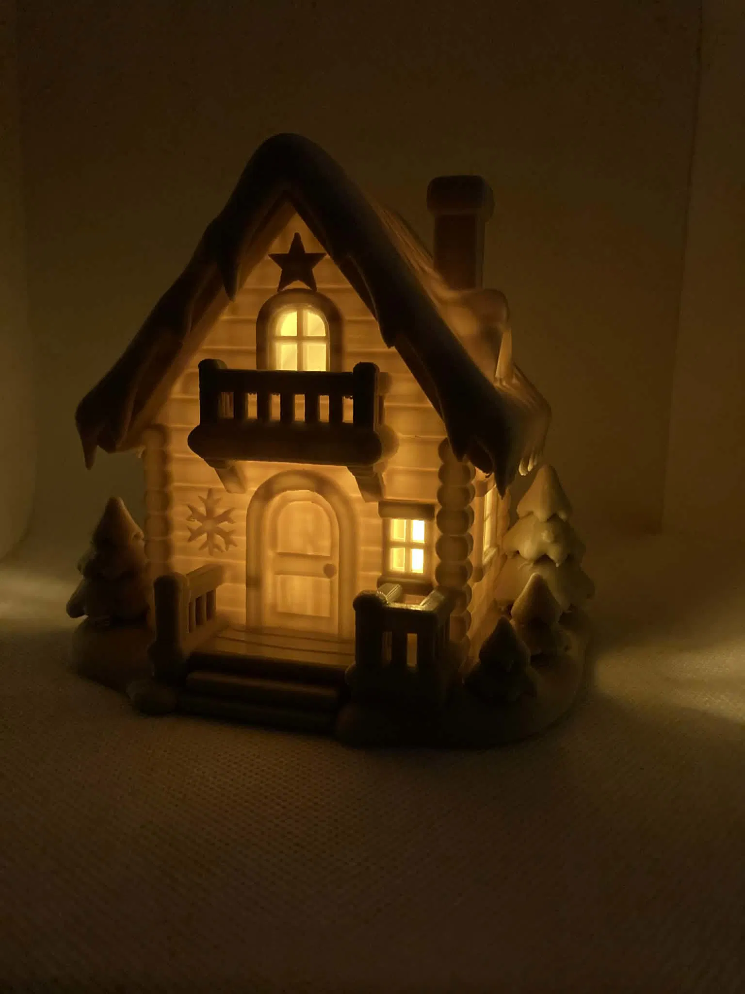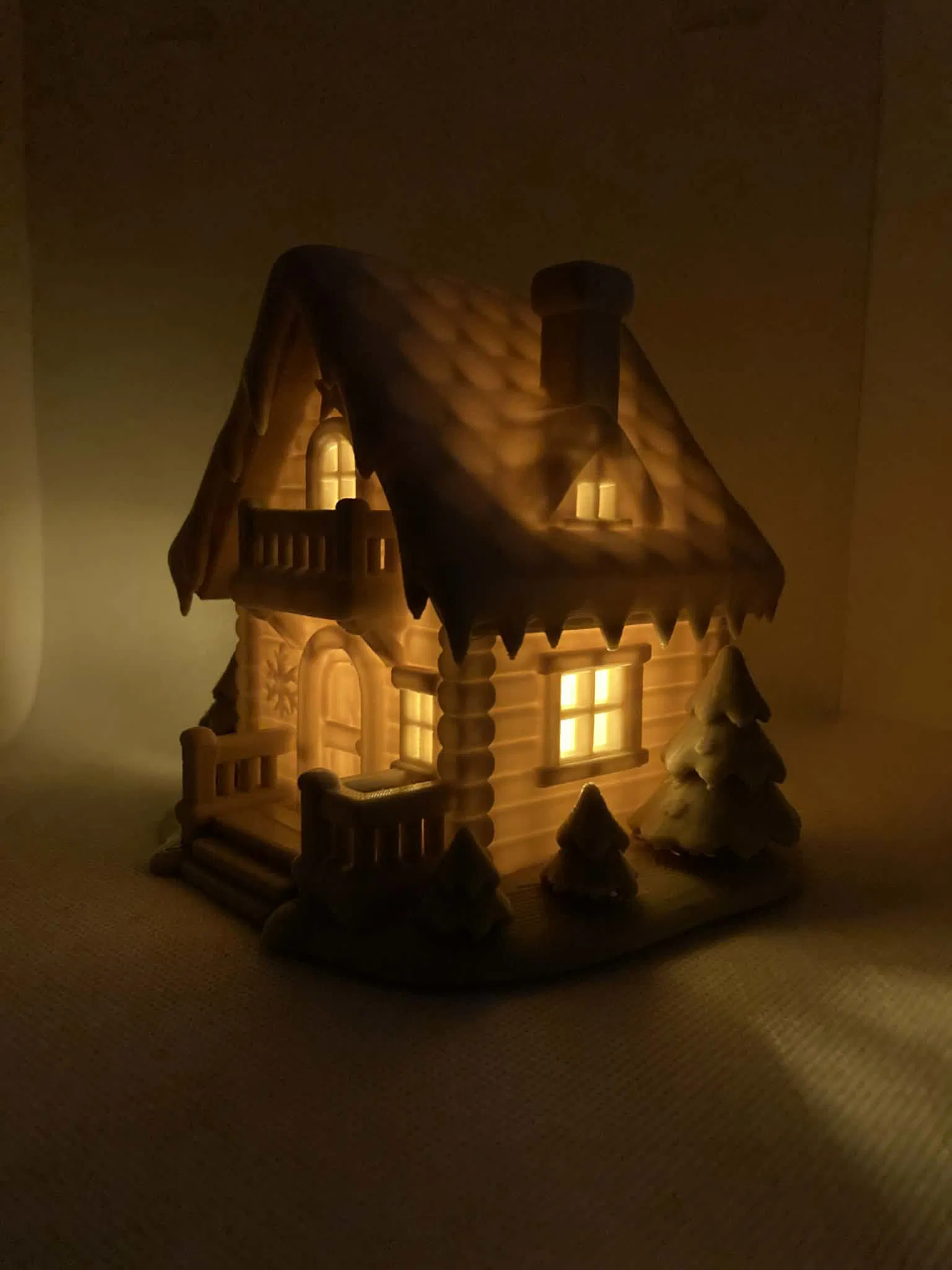Bên trong rỗng và được thiết kế để vừa với một nến tealight điện (LED) tiêu chuẩn, cho phép ánh sáng chiếu qua cửa sổ và cửa ra vào một cách dịu nhẹ, tạo hiệu ứng đèn ngủ quyến rũ. Nến tealight được đặt từ dưới lên hoặc qua một lỗ ẩn (tùy phiên bản mô hình của bạn).